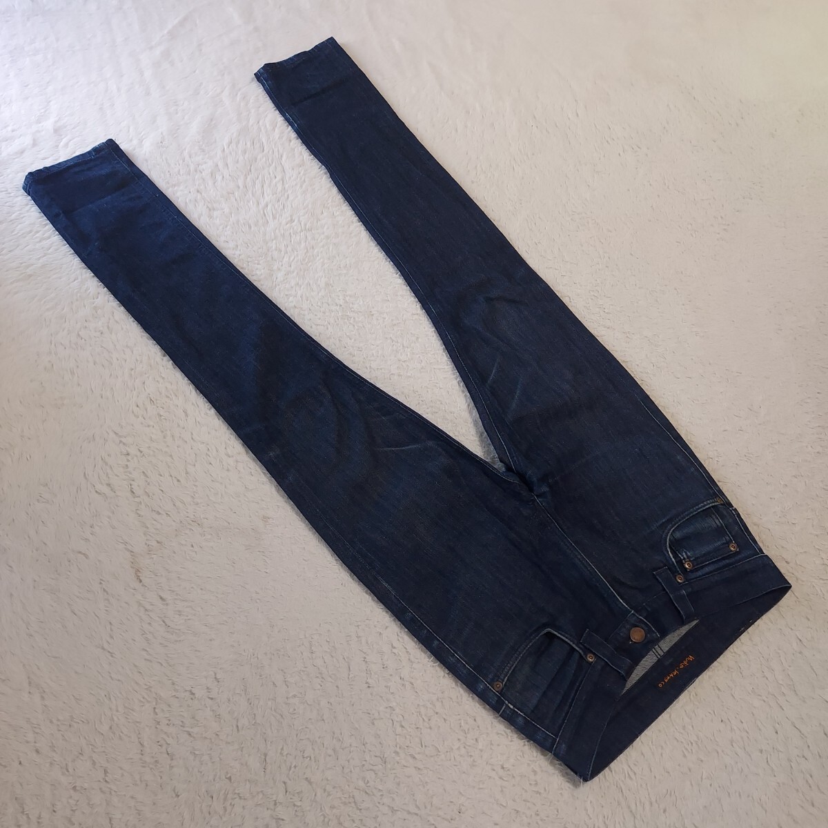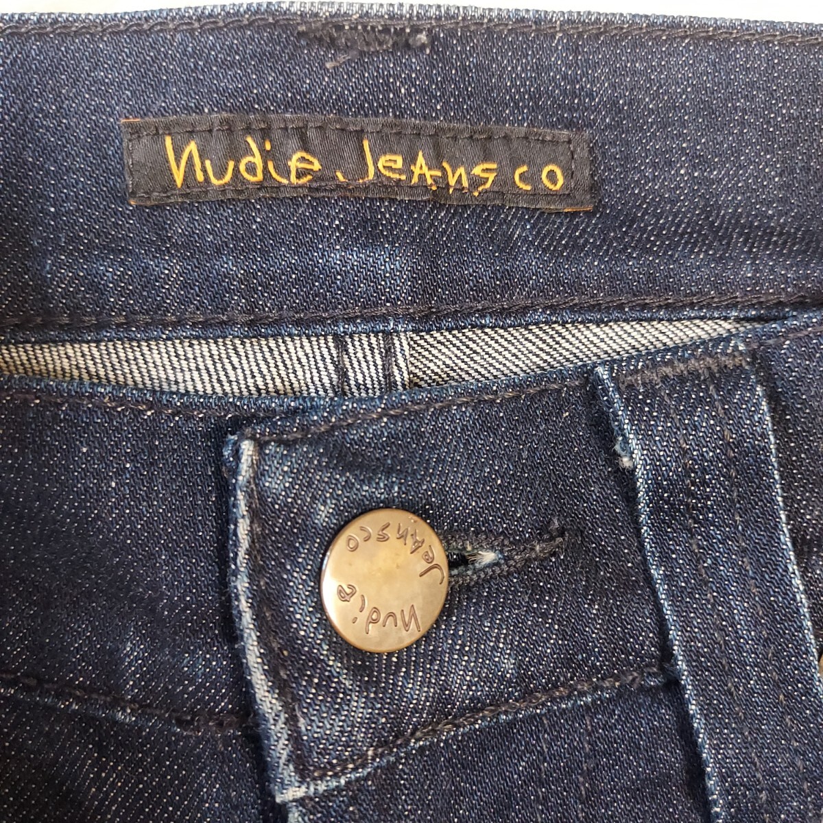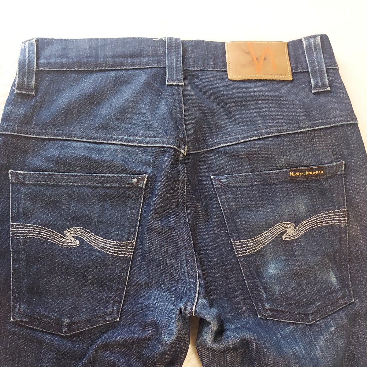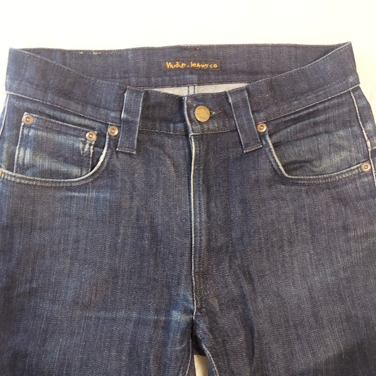 ヌーディージーンズが展開するキャロットシルエット『テープテッド』やや深めの股上、裾にかけてテイパードしたスキニーフィットです。バックポケットの位置が低く設定され、ジャストサイズでも自然な腰履きスタイルに見えます。ご紹介のこちらはブランドの定番カラー『オーガニックドライ』です。 10.75オンスのトルコ産オーガニックストレッチ生地を使用。光沢感のある未洗いのリジットデニムです。ジッパーフライ。バックポケットのヌーディーステッチはグレーです。