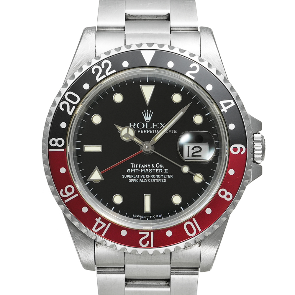 箱・保証書付き ロレックス GMTマスター2 ティファニーWネーム コーク ノンポリッシュ品 E番 1990年~1991年製造 Ref.16710 中古品 腕時計