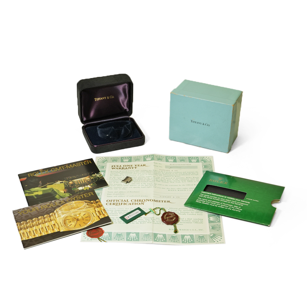 取扱説明書、保証書、ティファニー箱、余りコマ、ロレックスタグ×2(緑、白)