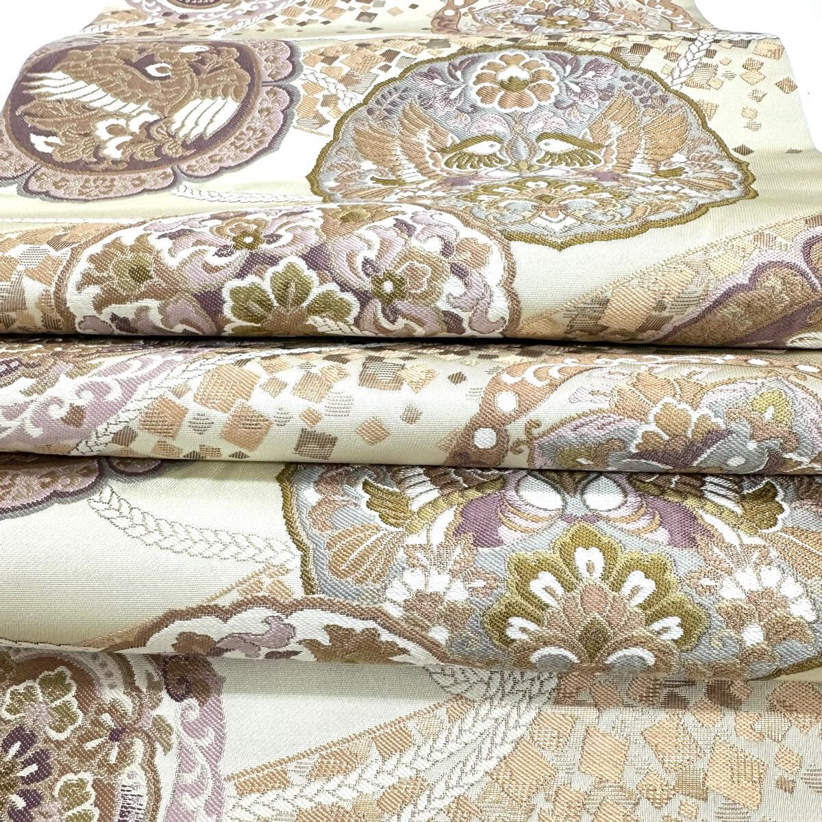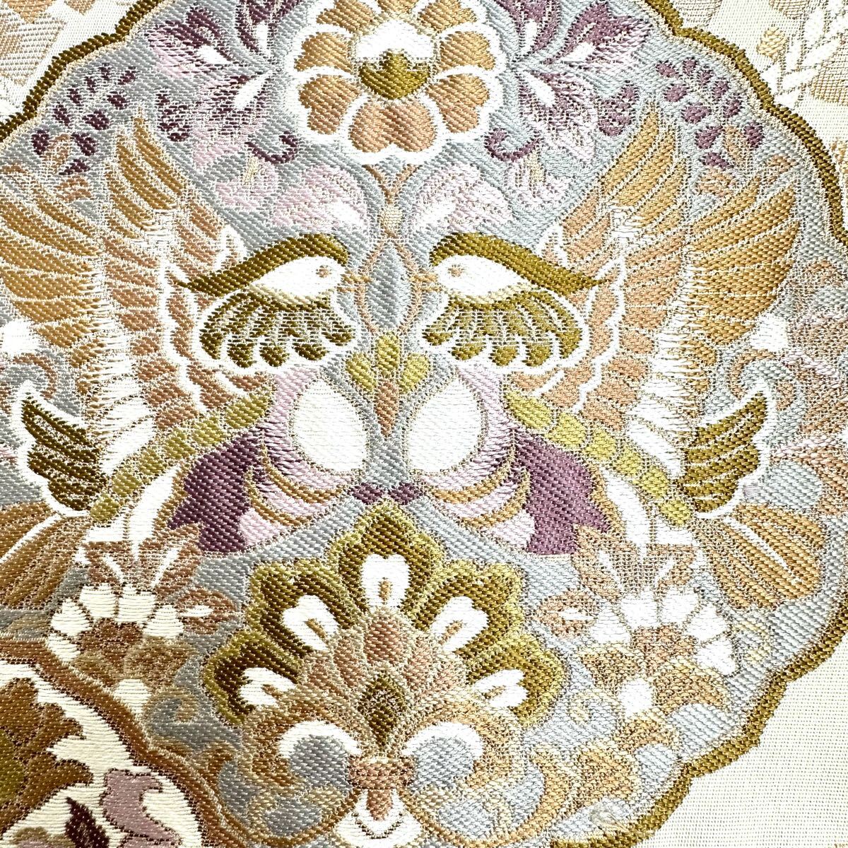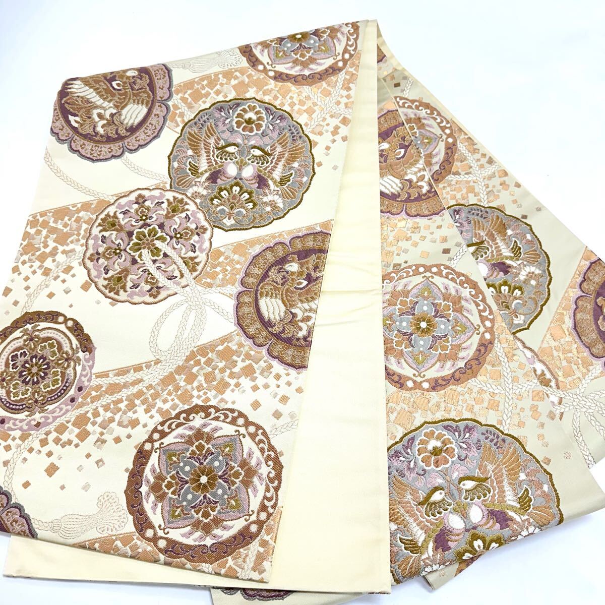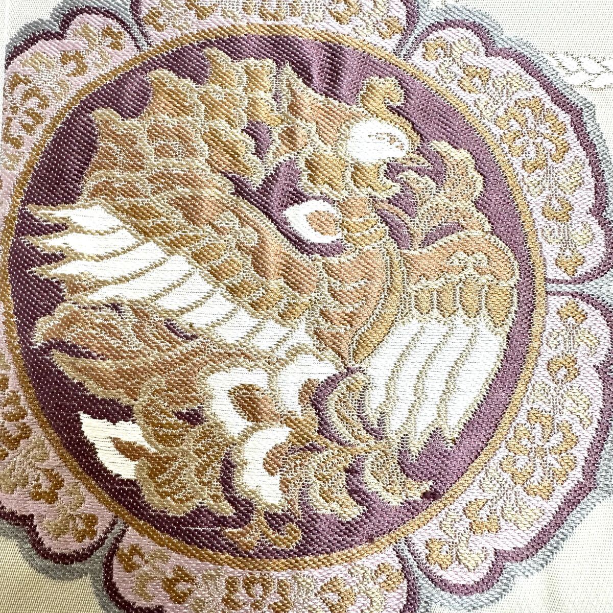 【七福】c590 逸品 高級品 正絹 袋帯 六通 華文 向かい鳥 鳳凰 金糸 刺繍 豪華