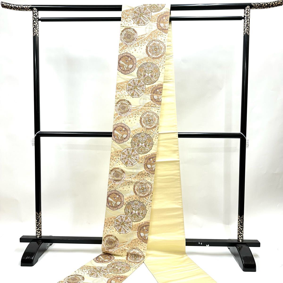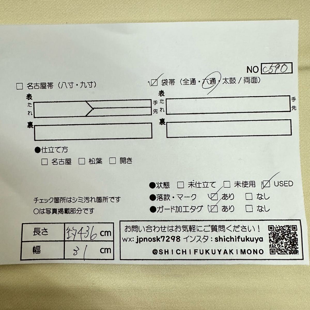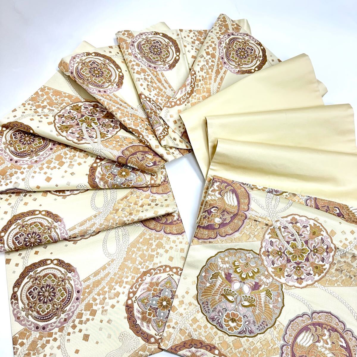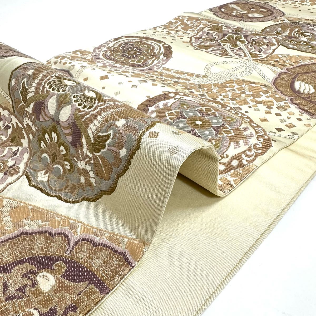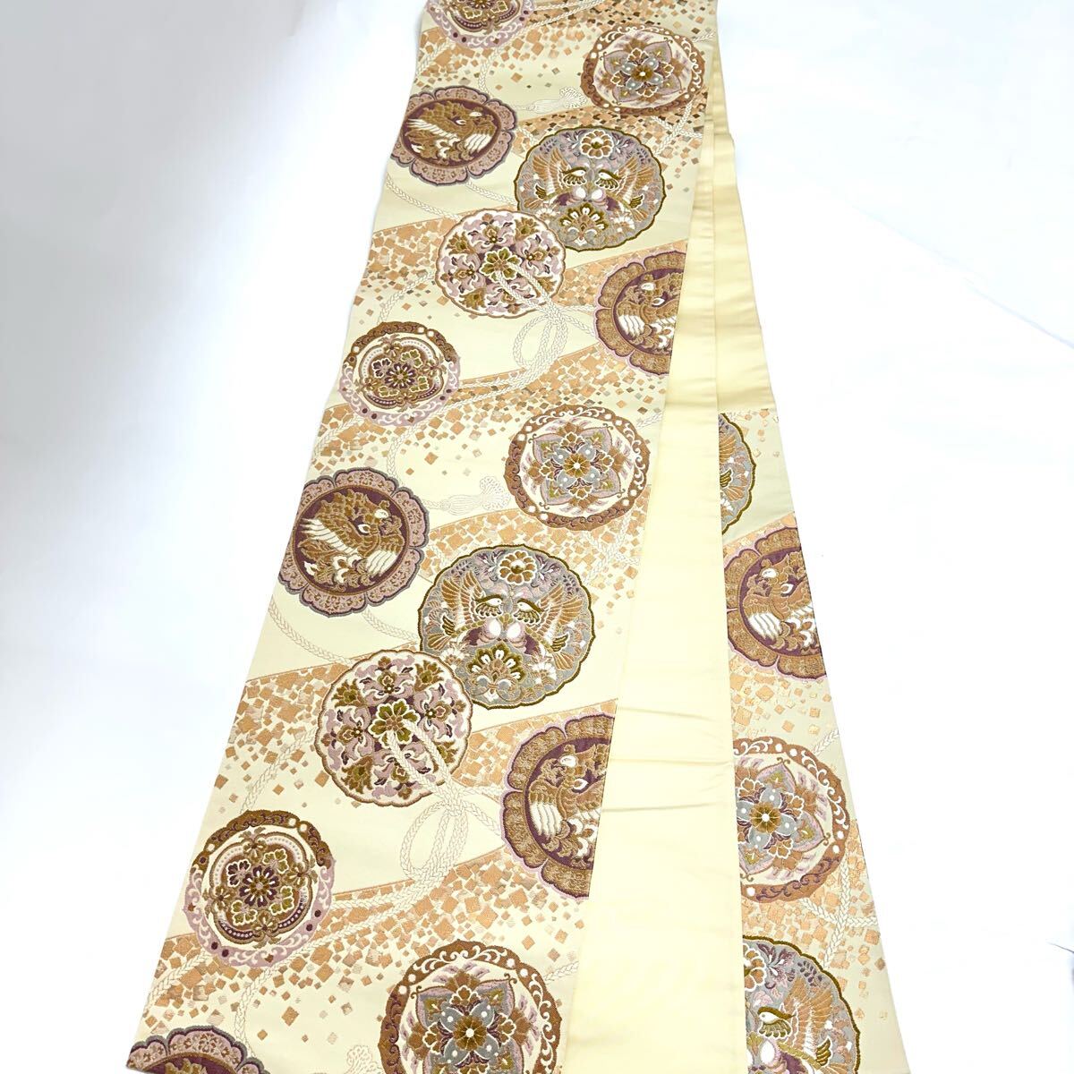 【七福】c590 逸品 高級品 正絹 袋帯 六通 華文 向かい鳥 鳳凰 金糸 刺繍 豪華
