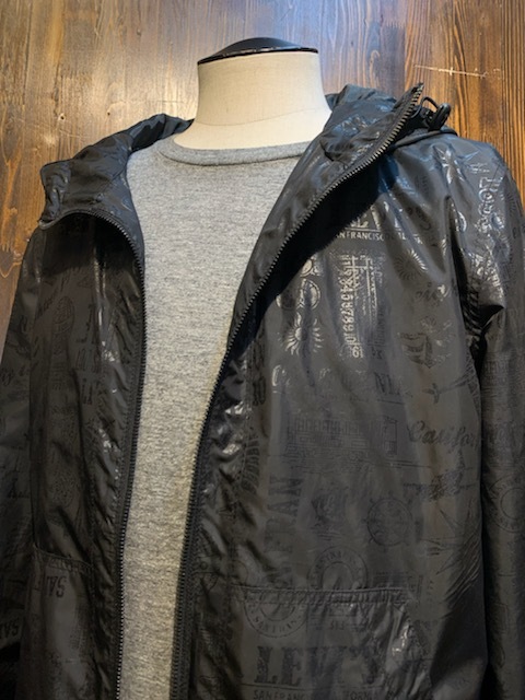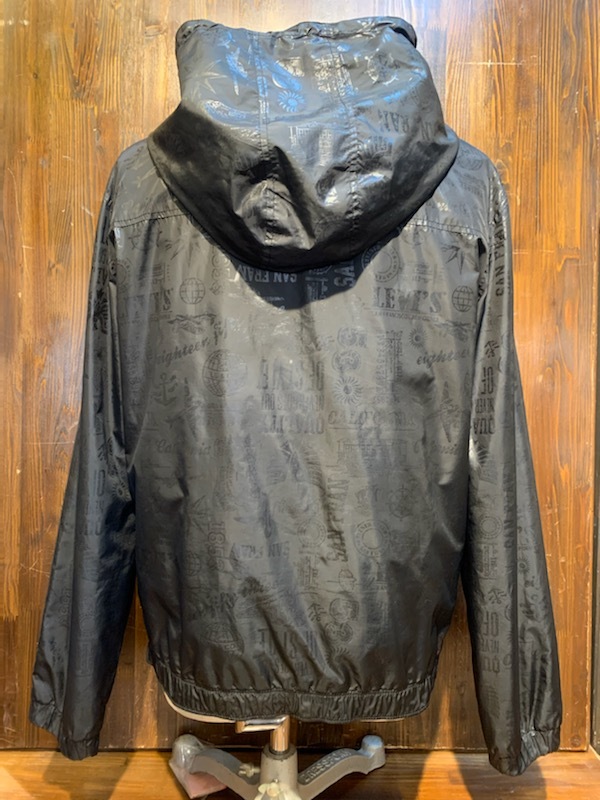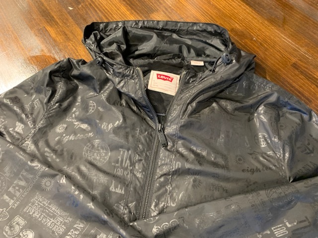 K131 メンズ ブルゾン Levi's リーバイス ブラック 黒 総柄 パーカー フード ジャケット 薄手 ナイロン JKT / M (6)