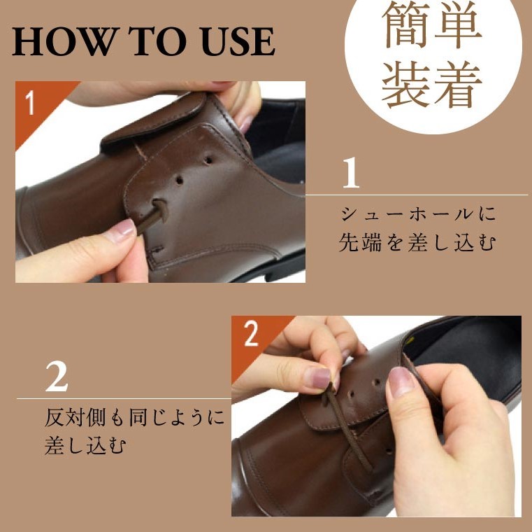 ●ビジネスシューズ専用の脱ぎ履きが楽々の結ばない靴紐です。