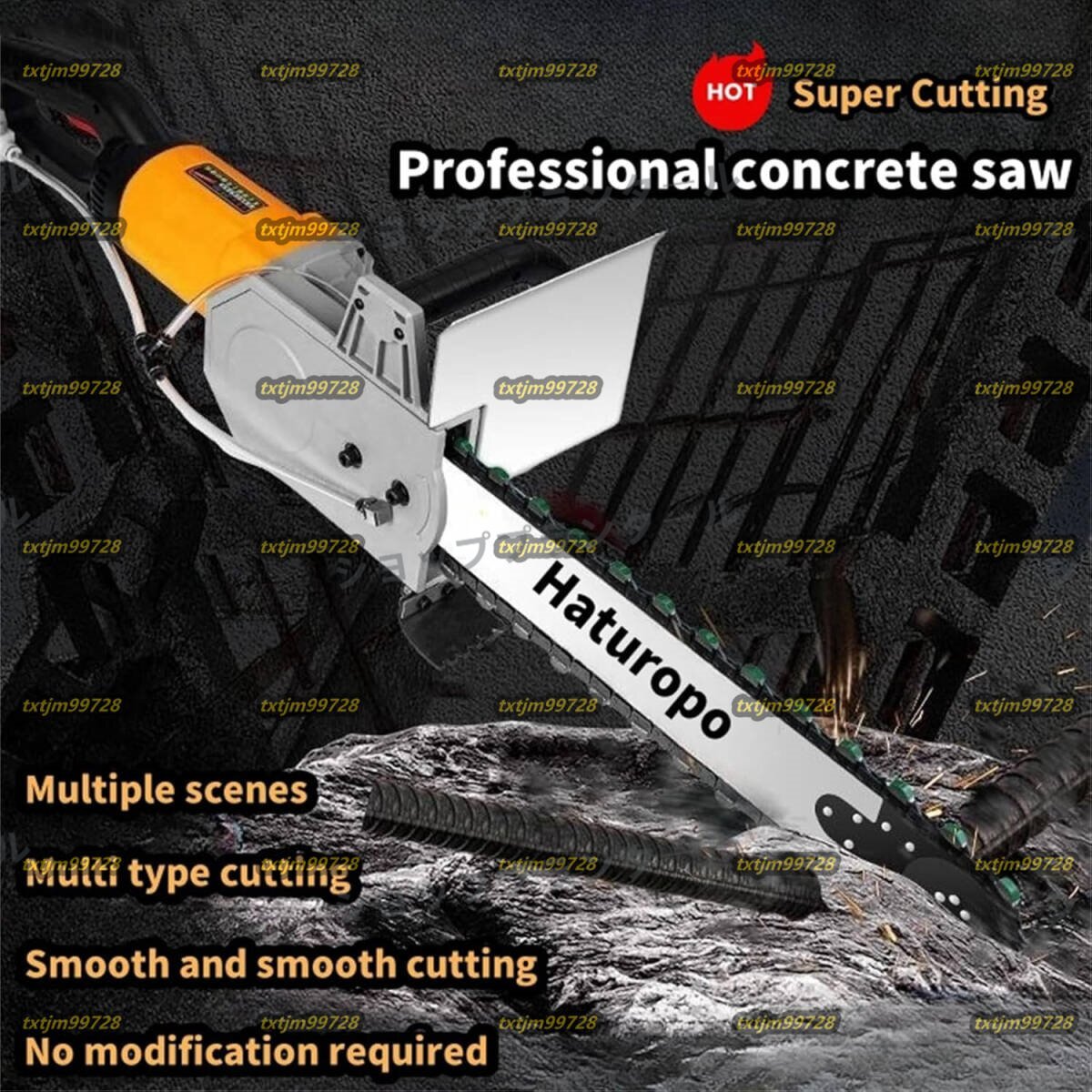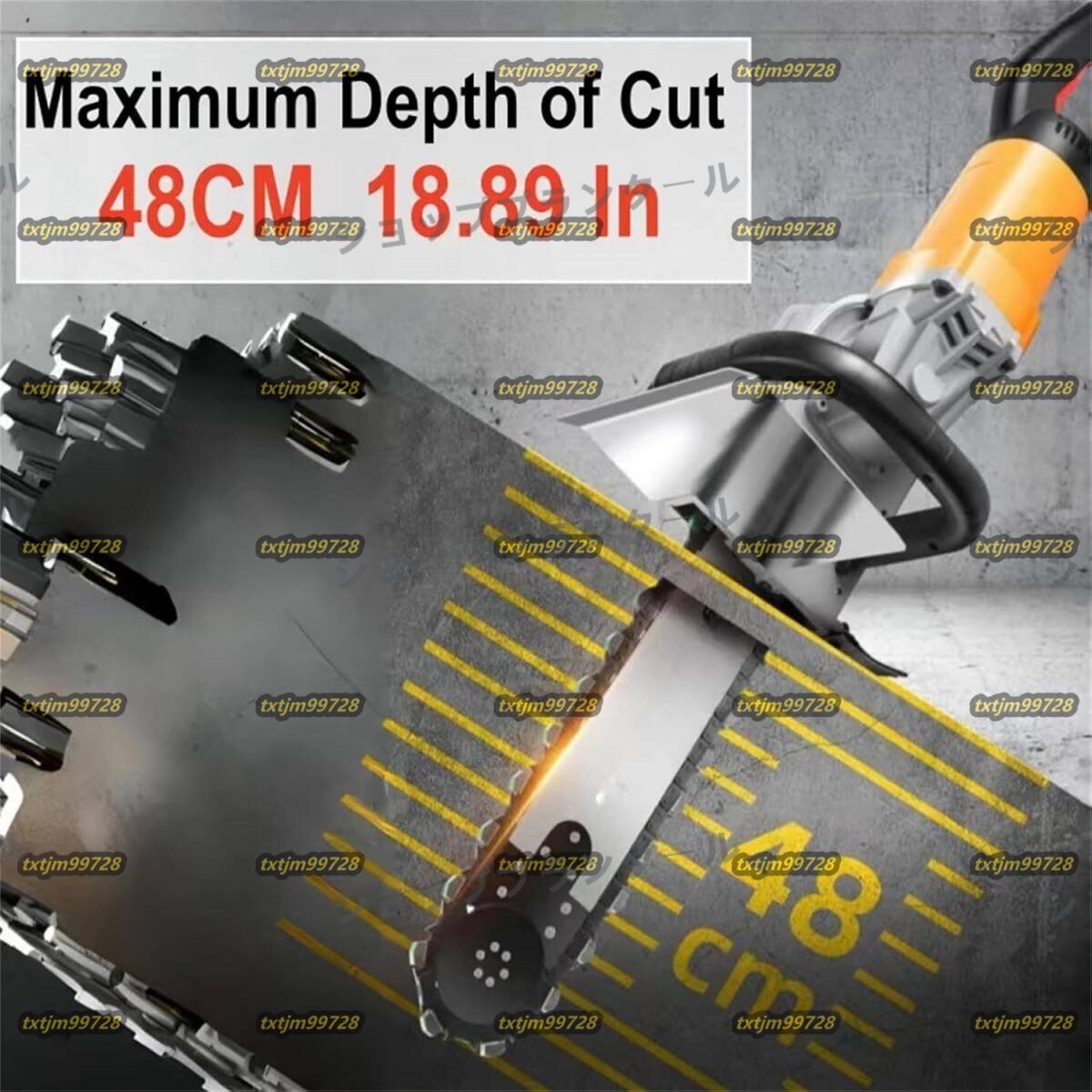 【幅広い用途】当社の電動コンクリートソーは、48 cm / 18.89インチの強力な切断深さを備えています。壁の溝切りを自動的に素早くスムーズに完了できます。より深い壁、各種鉄筋コンクリート、路面、磁器、石材などの切断に使用できるコンクリートチェーンソーです。
