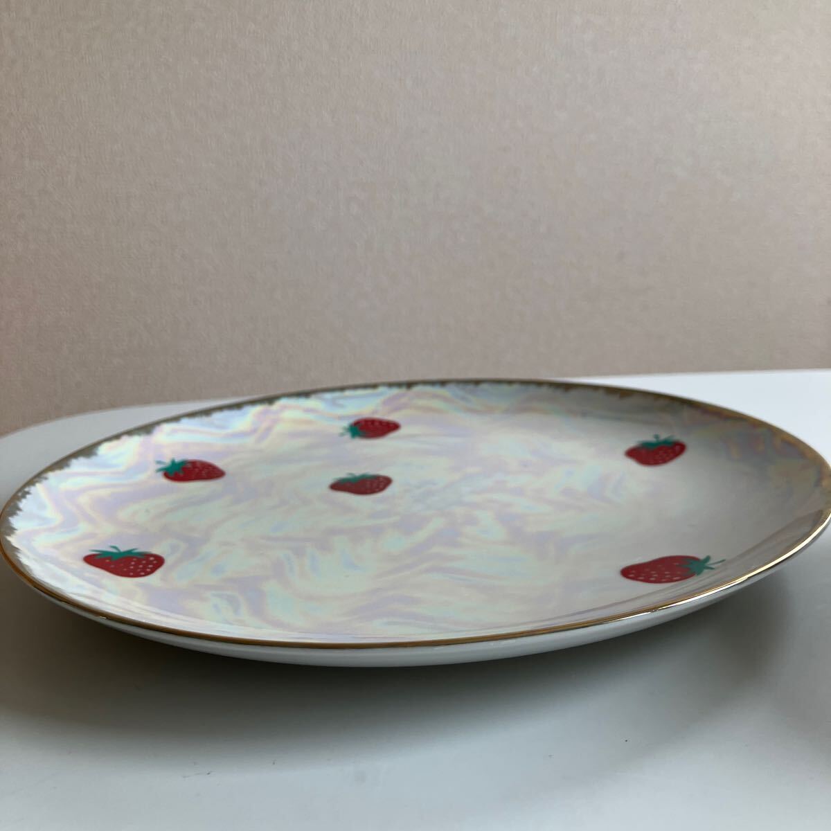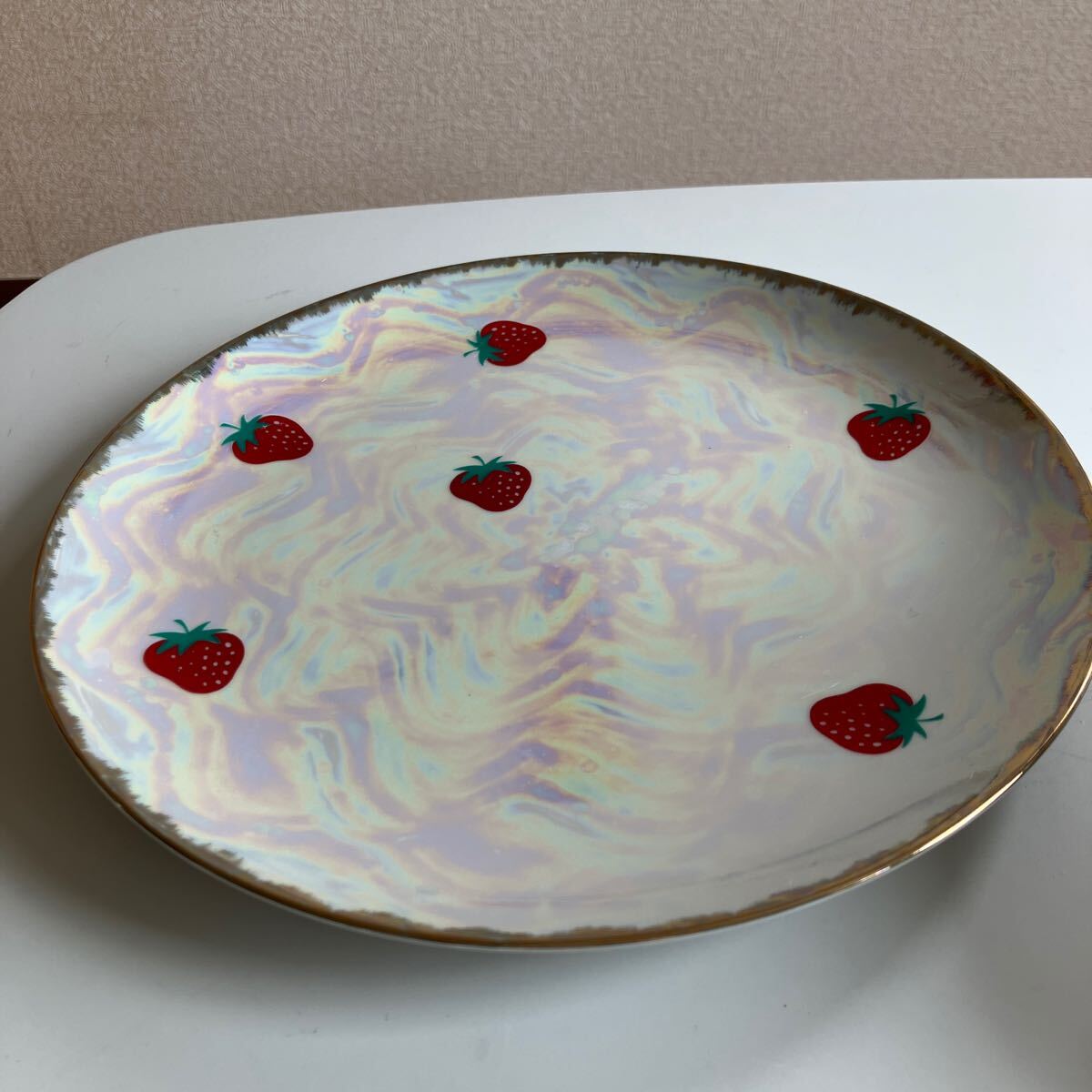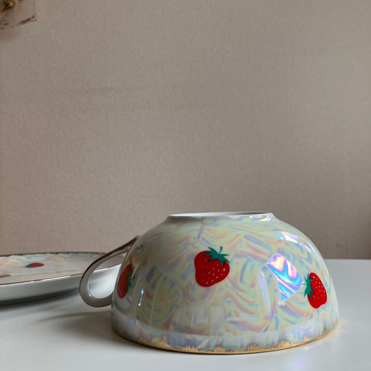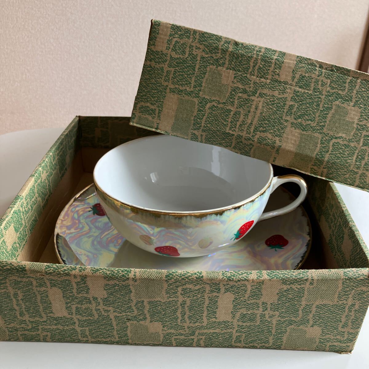 いちご柄 ボール 大き目皿 セット ビックカップ&ソーサー 苺柄 ストロベリーパーム 昭和レトロ アンティーク かわいいいちご 陶器 /金彩