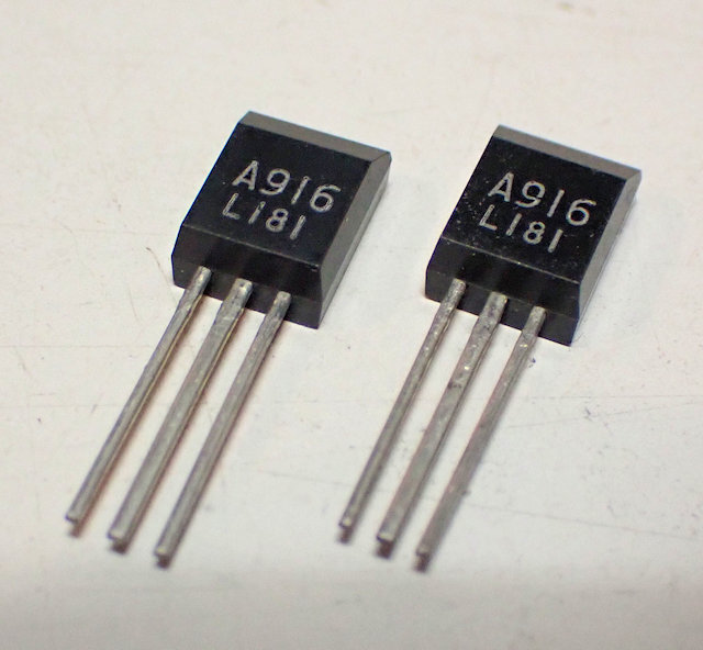2SA916は高耐圧のオーディオアンプのプリドライバに使用されます。1W、160V、Cob:2.5pF。