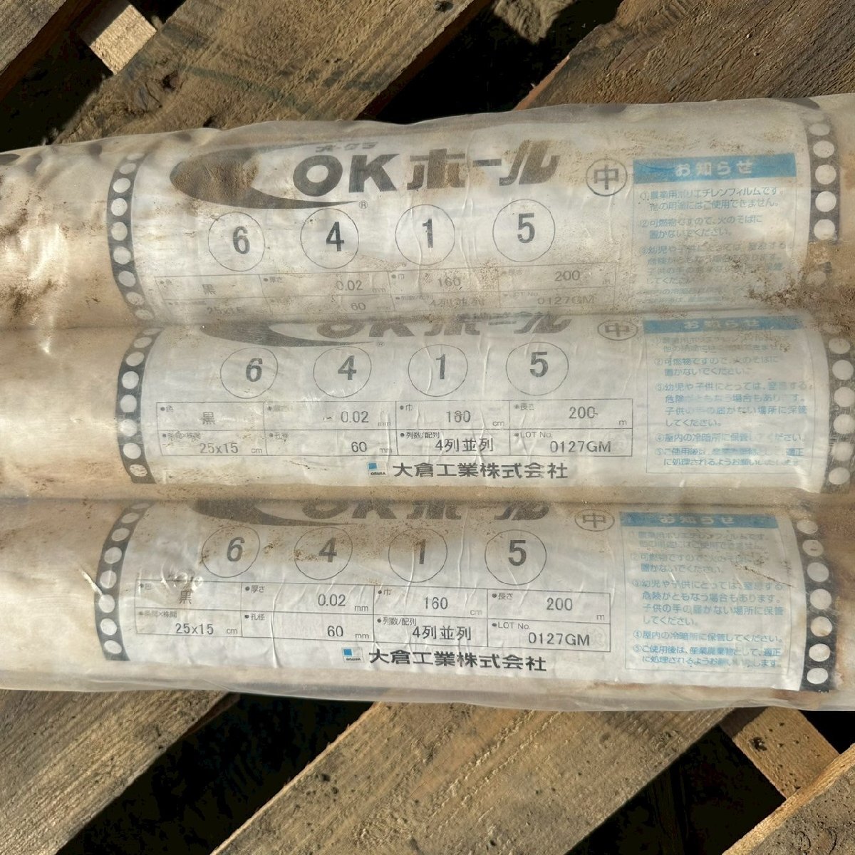 ☆未使用☆ 青森 七戸店 オークラ マルチフィルム ④ ニンニク 3本セット 黒色 長さ200m 巾160cm 厚さ0.02mm 孔経60mm 東北 中古