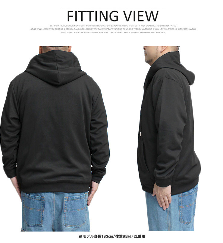 商品名 | 【新品】 3L ブラック パーカー メンズ 大きいサイズ 長袖 ダンボール ジャガード ロゴ テープ フード裏 プリント ジップアップ スウェット |