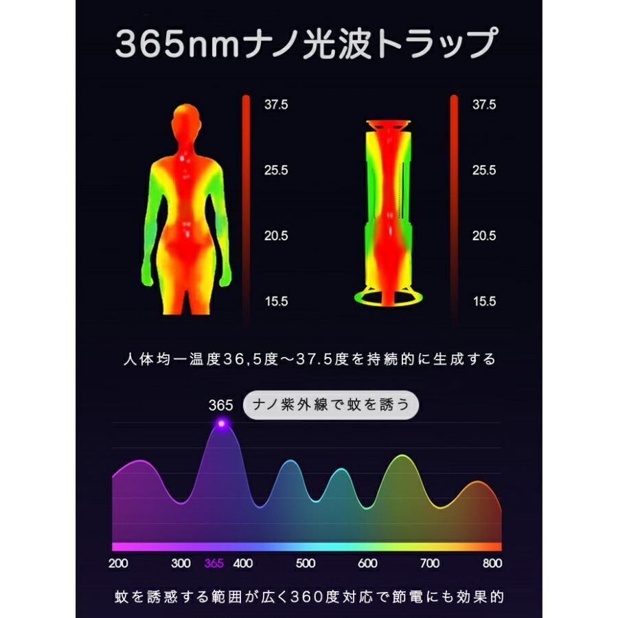 害虫が好む光に集まる習性を利用し紫外線ライト で誘惑し紫外線光源を発散した波長365-395n m内で蚊を捕らえ駆除することができます。