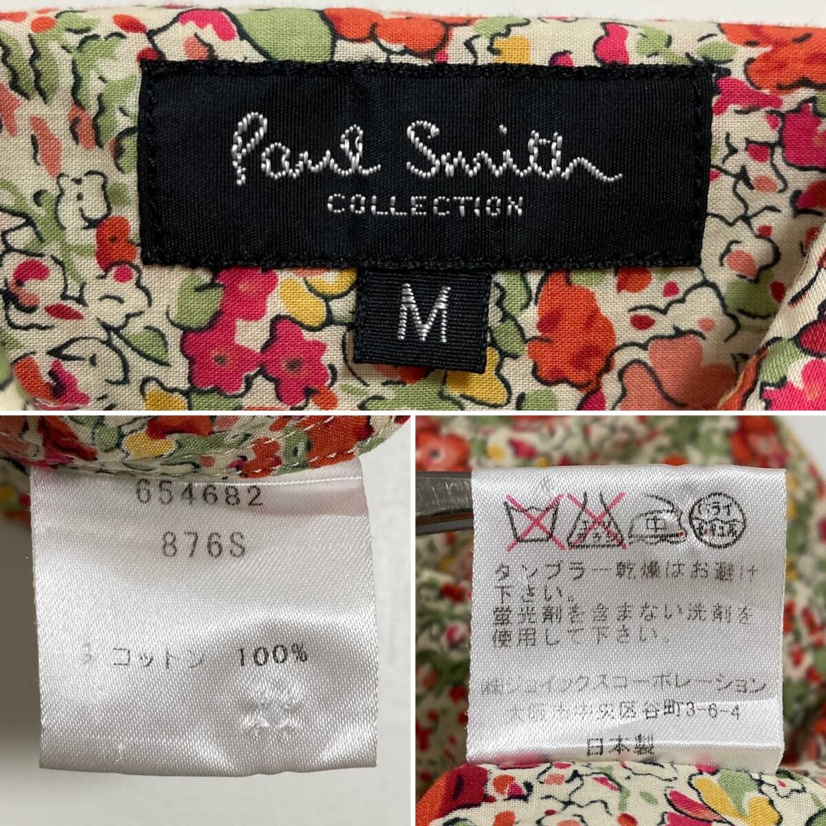 Paul Smith Collection ボタニカル柄 半袖 シャツ メンズ Mサイズ 日本製 ポールスミス 花柄 小花 フローラル 柄シャツ 5060095