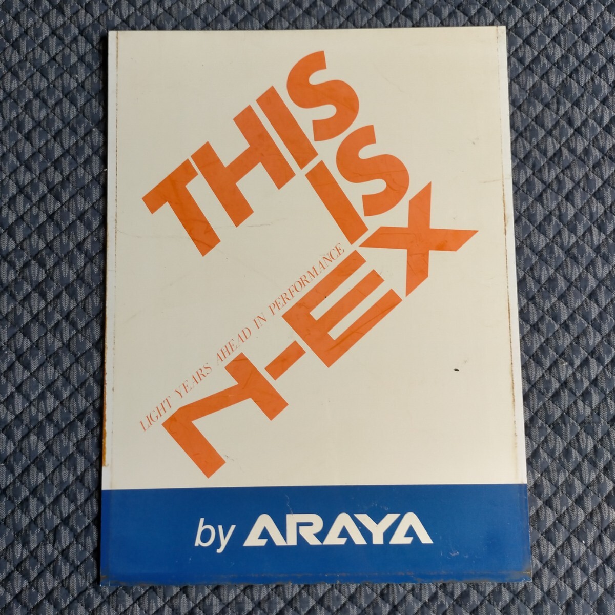 90年代初期のARAYAの看板です。恐らく販促用の非売品です。ペラペラではなく多少厚みあるのでガレージの飾りなどに良いかと思います。