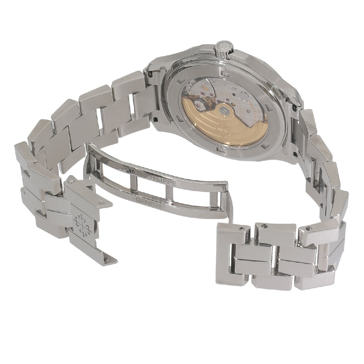 | モデルについて | ノーチラスと並びパテックフィリップの人気機種であるアクアノート。1997年に初代モデルである5060Aが発表されて以降、現在に至るまで幾度かのモデルチェンジが行われていますが、高い人気を維持し続けるブランドを代表するコレクション。このRef.5065は初代アクアノートでは最も大きいラージサイズとなり、バックスケルトン式に変更となった1998年に誕生します。現行モデルとは異なる深いエンボスパターンの文字盤が目を惹き、他に類を見ない全面ポリッシュ仕上げを採用するブレスレットも特徴的です。生産終了から今なお人気の高いモデルであり、そのデザインは現在レディースモデルであるアクアノートルーチェへと受け継がれています。 |