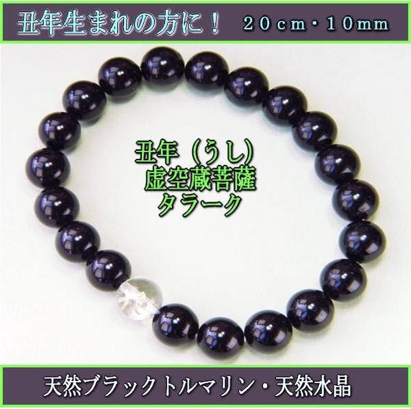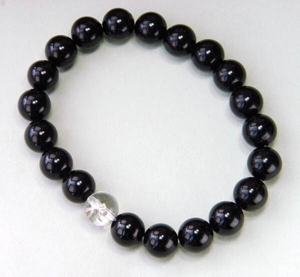 ◆宝石材質:天然ブラックトルマリン 20石、天然水晶 1石 ◆宝石玉サイズ=直径約10mm ◆長さ:約20cm |