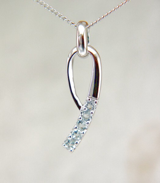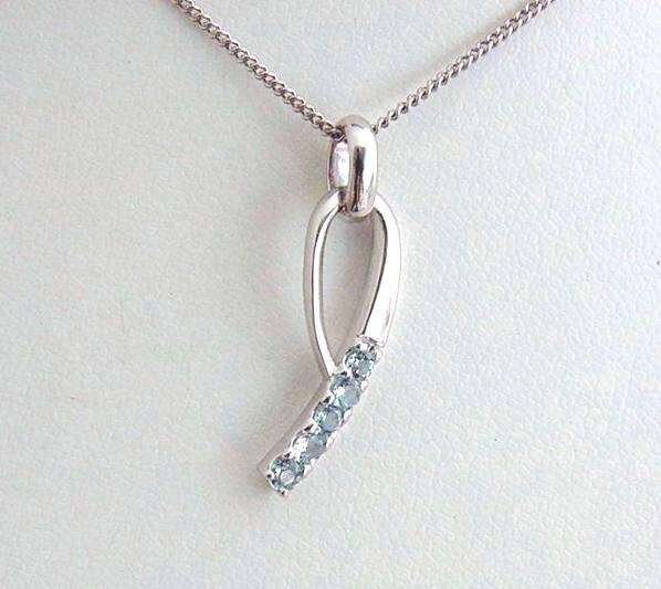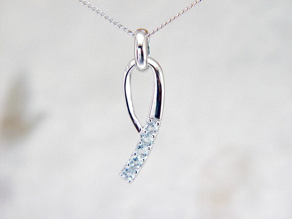 ◆宝石材質:天然アクアマリン 5石(約0.26ct) ◆地金素材:SILVER925プラチナ仕上げ(ロジウムコーティング) ◆サイズ:縦横=約25×8mm(バチカンを含む縦のサイズ約30mm) サービスチェーン:材質=真鍮にロジウムメッキ、チェーンの長さは約40cm |