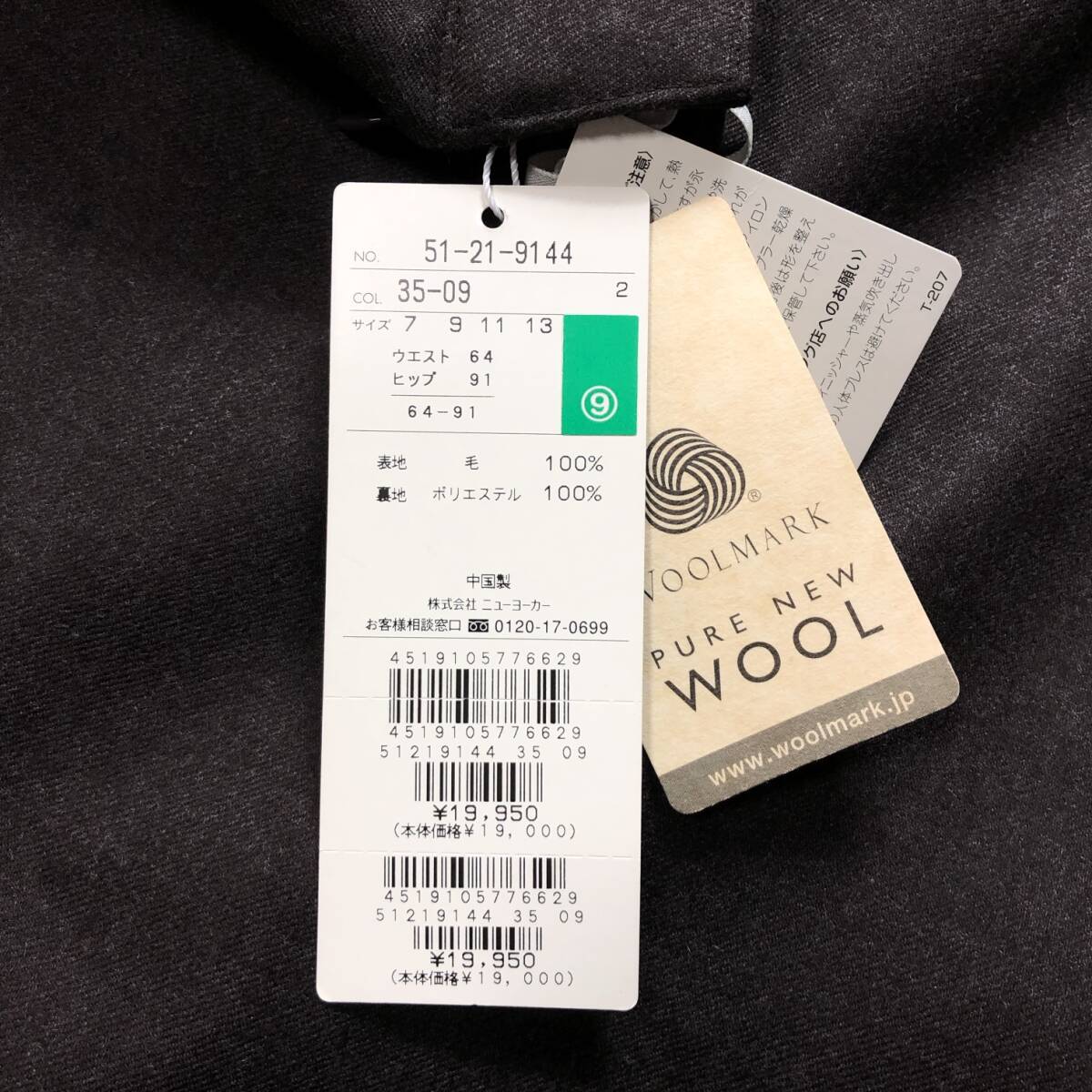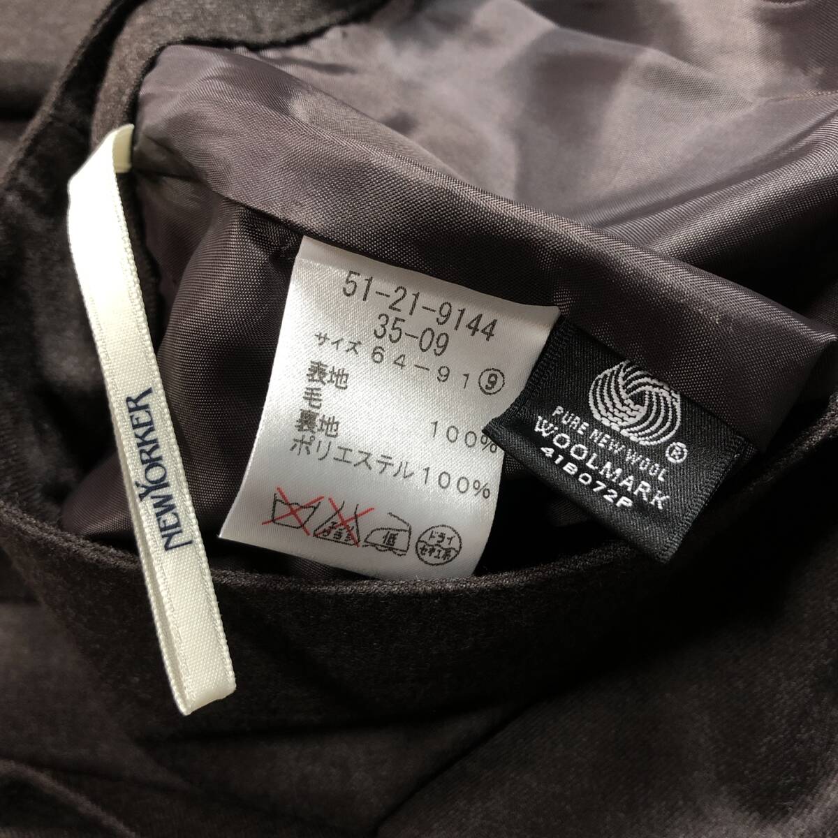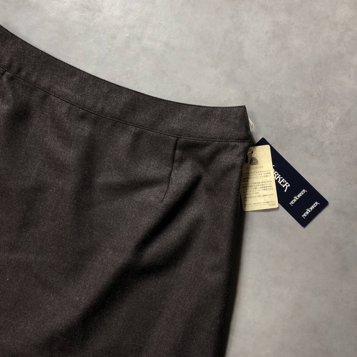 WH031●NEWYORKER:裾プリーツ膝丈ウールスカート ●9● ブラウン タグ付き 定価 ¥19950- ニューヨーカー