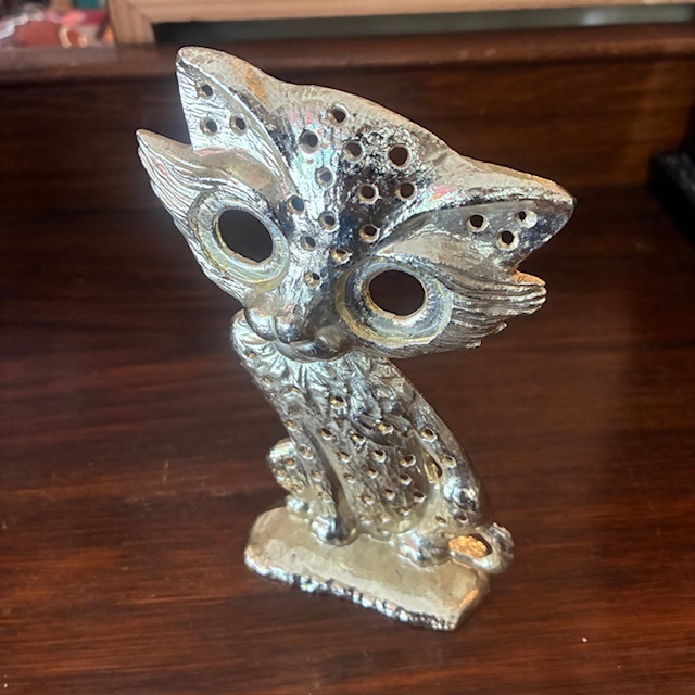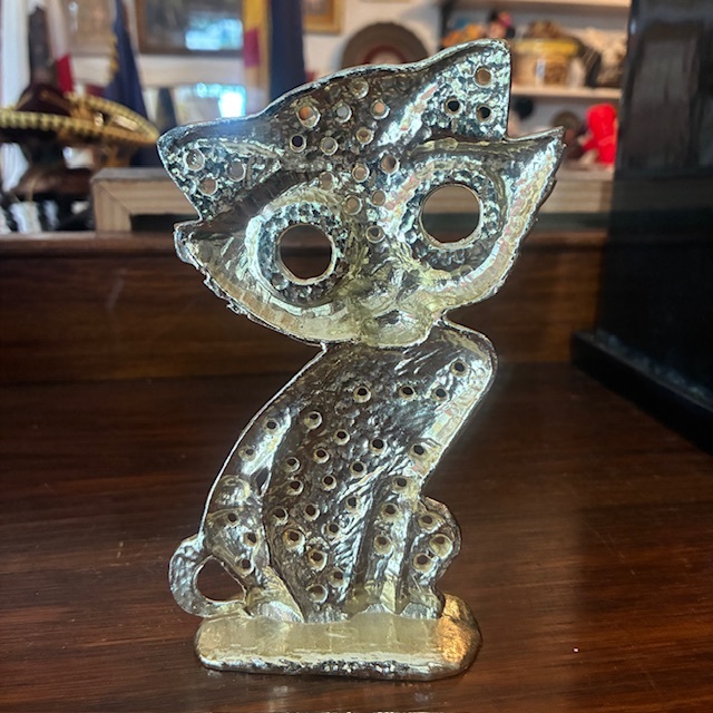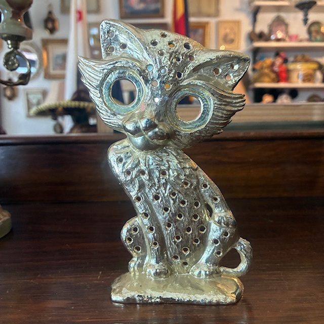 1960〜70年代頃の猫モチーフの金属製アクセサリーホルダーになります。ピアスやイヤリングを飾って保管するのに便利です。