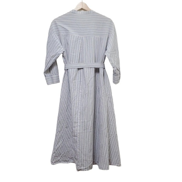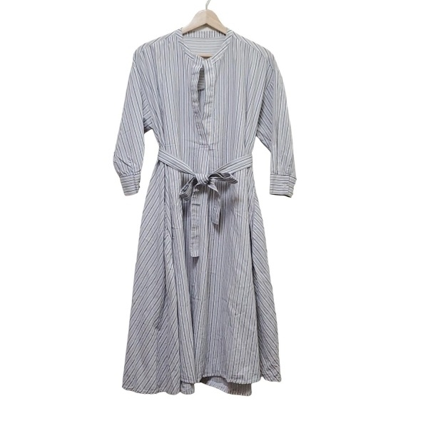 バーニーズ BARNEYSNEWYORK サイズ38 M - ライトグレー×白×マルチ レディース 長袖/ひざ丈/シャツワンピ/ストライプ/ベルト付き 美品