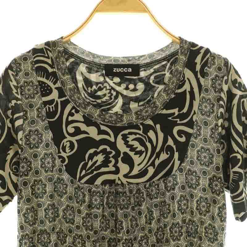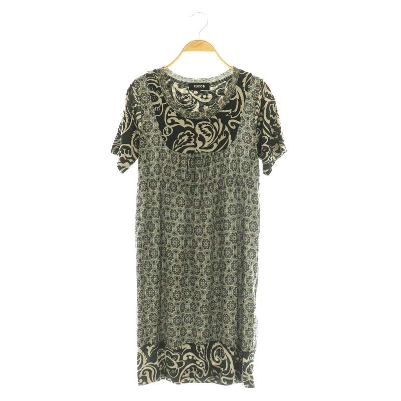 ズッカ zucca 総柄 半袖 ワンピース ミニ M ブラック /MY ■OS レディース