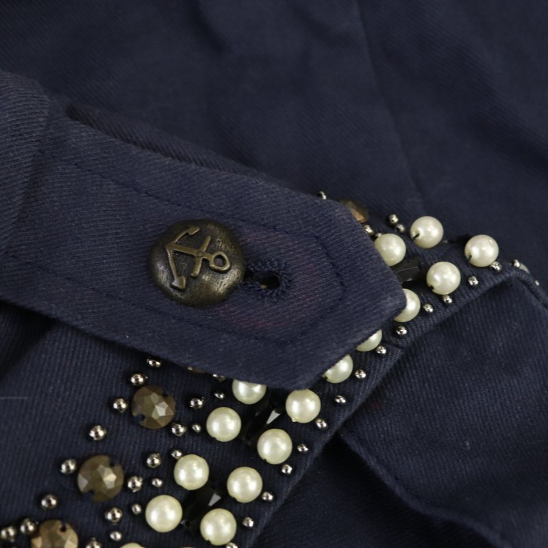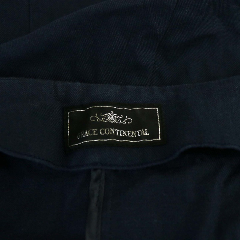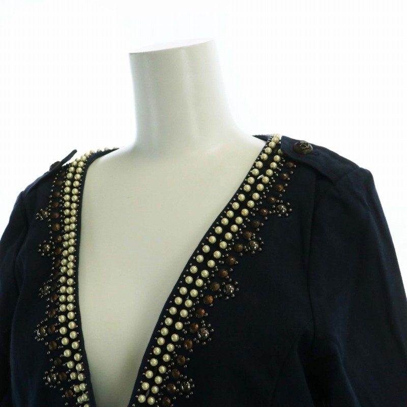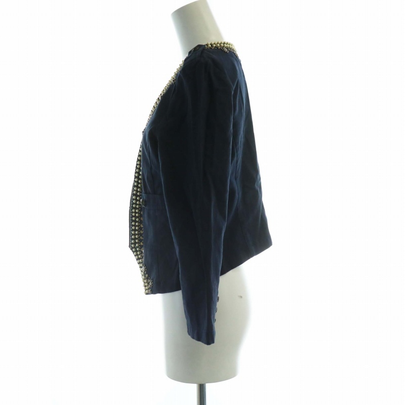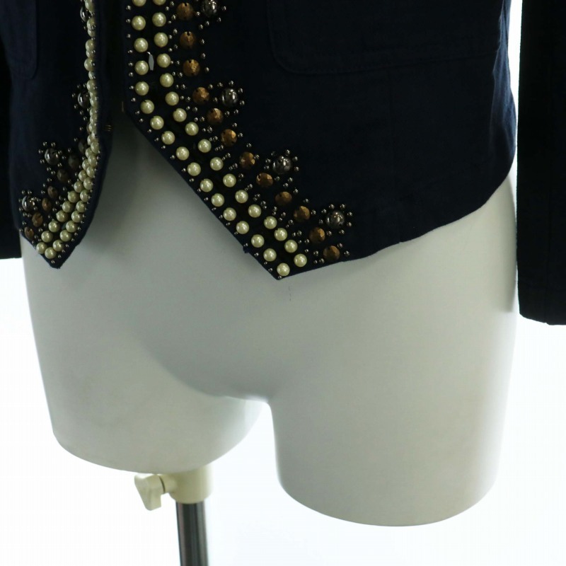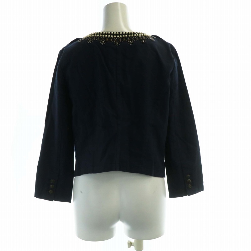 グレースコンチネンタル ノーカラージャケット クロップド丈 ビジュー装飾 アウター 七分袖 38 紺 ネイビー 05111801 /RO レディース