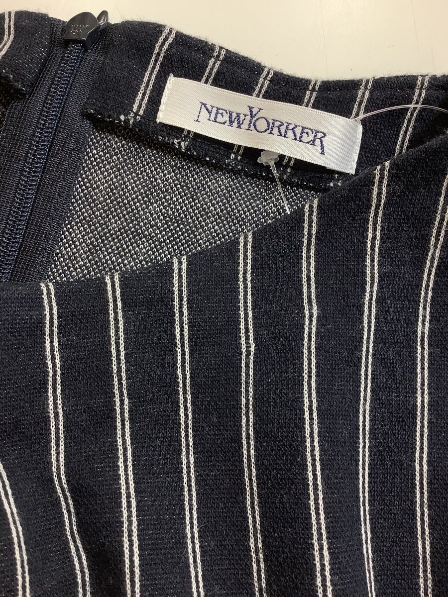 管理番号:10^135945 ニューヨーカー すみ黒に白ストライプカットソー 表示サイズ:M 実寸(参考)