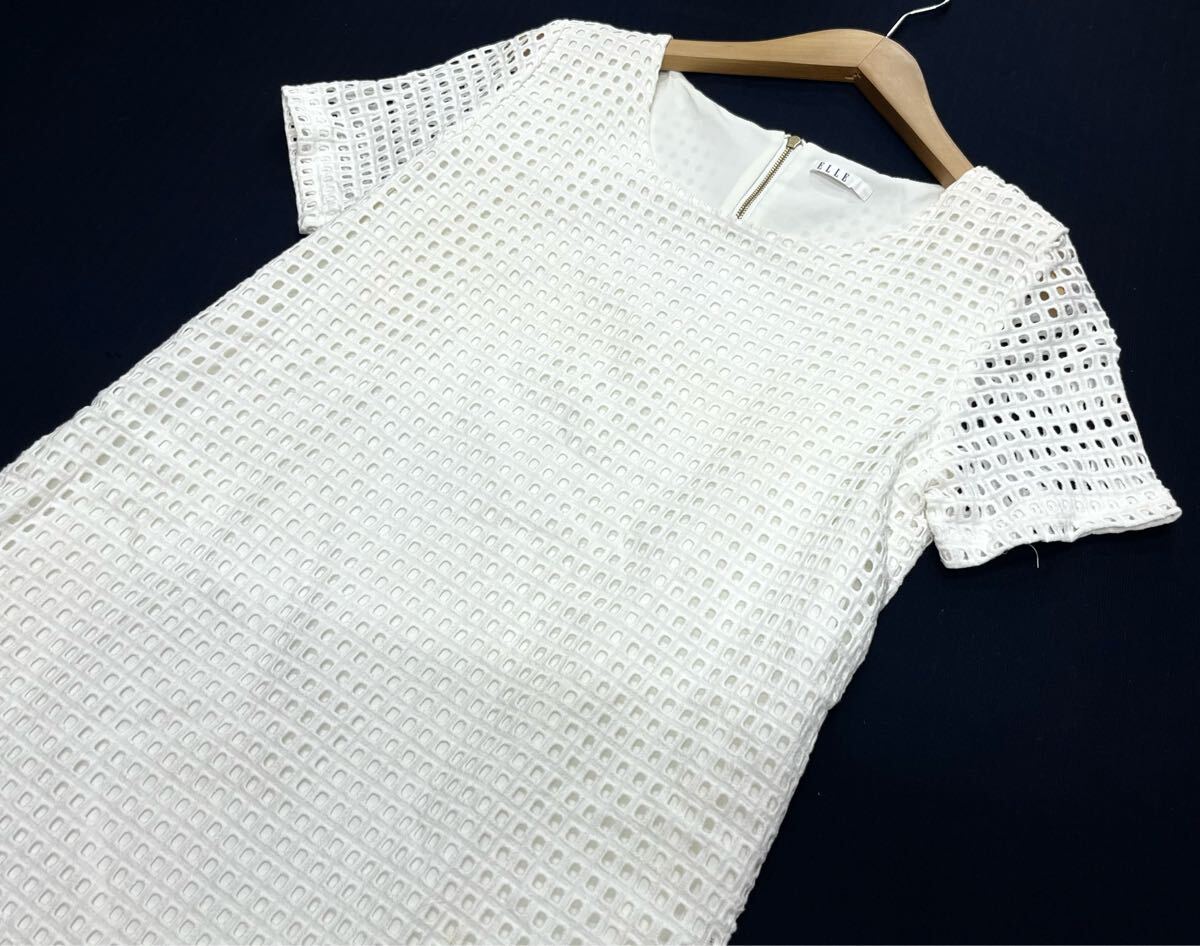 ELLE★エル★(40)スクエアレース 半袖 ワンピース 管理No.070404ok ヾ(@^▽^@)ノ