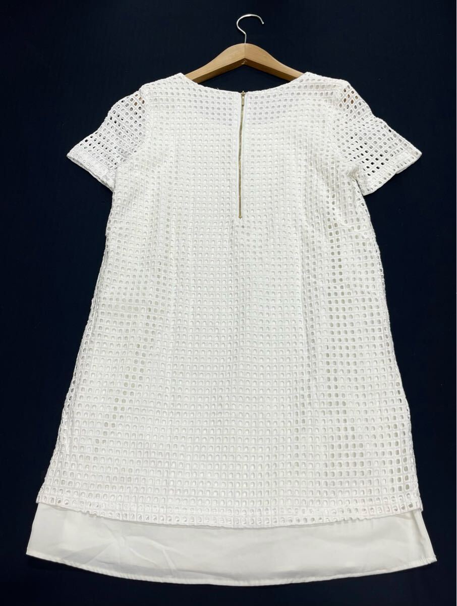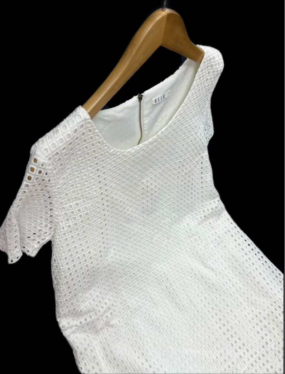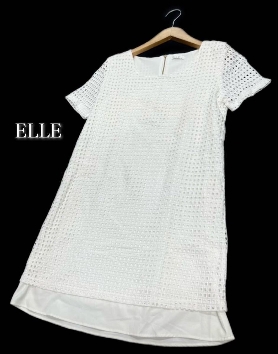 ELLE★エル★(40)スクエアレース 半袖 ワンピース/白