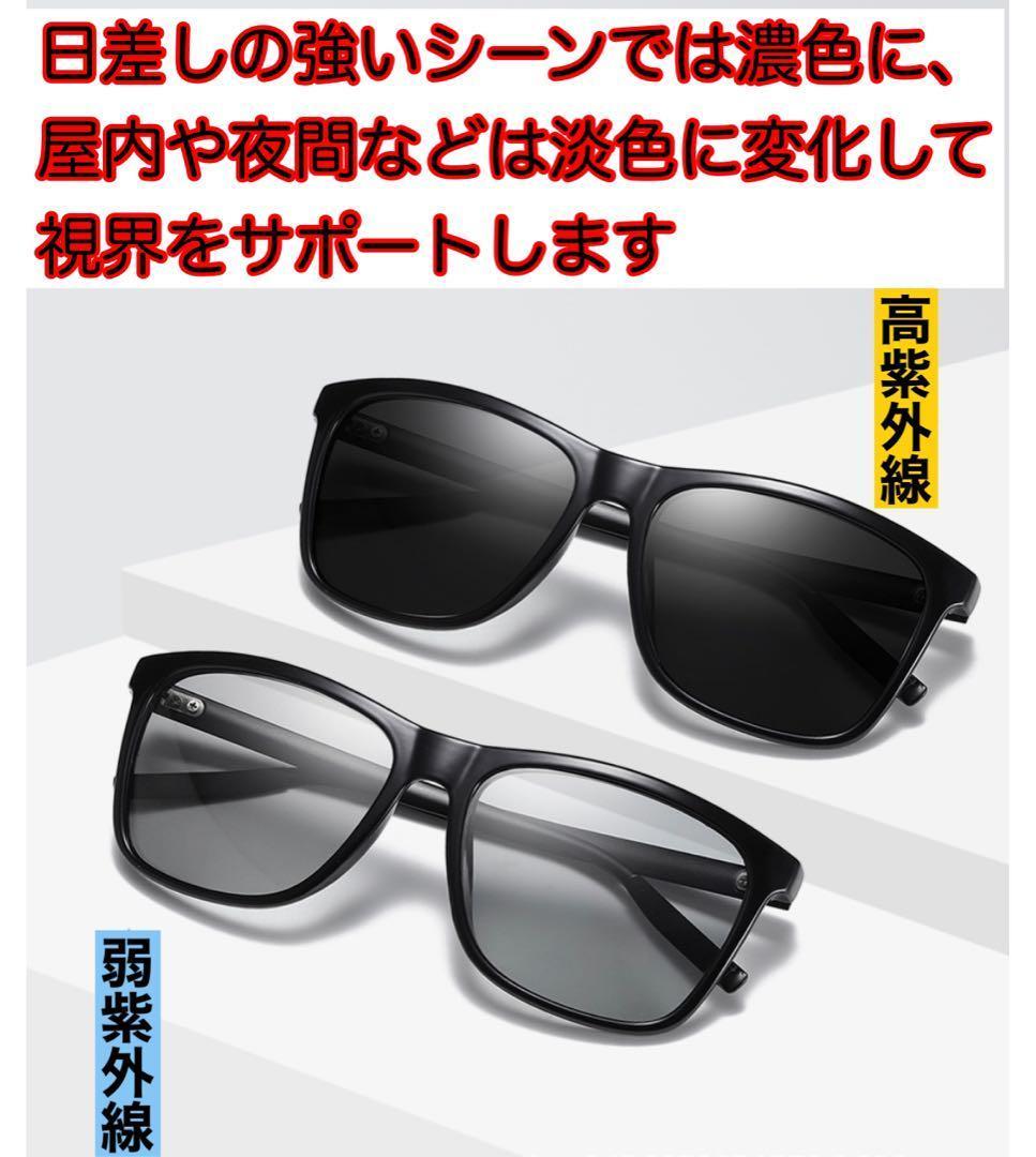 UV400の偏光サングラスに自動調光機能がプラスされた特殊レンズのサングラス