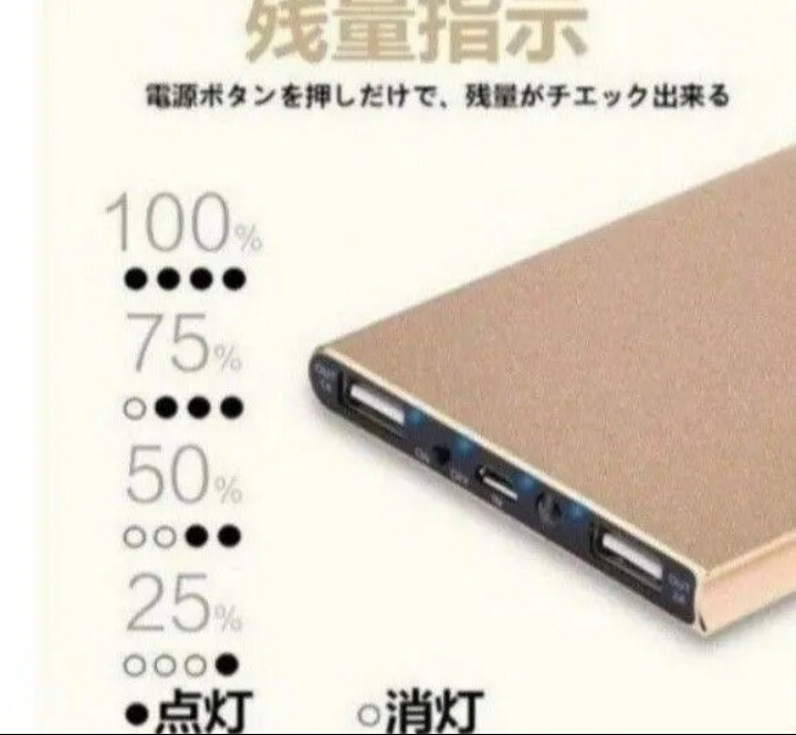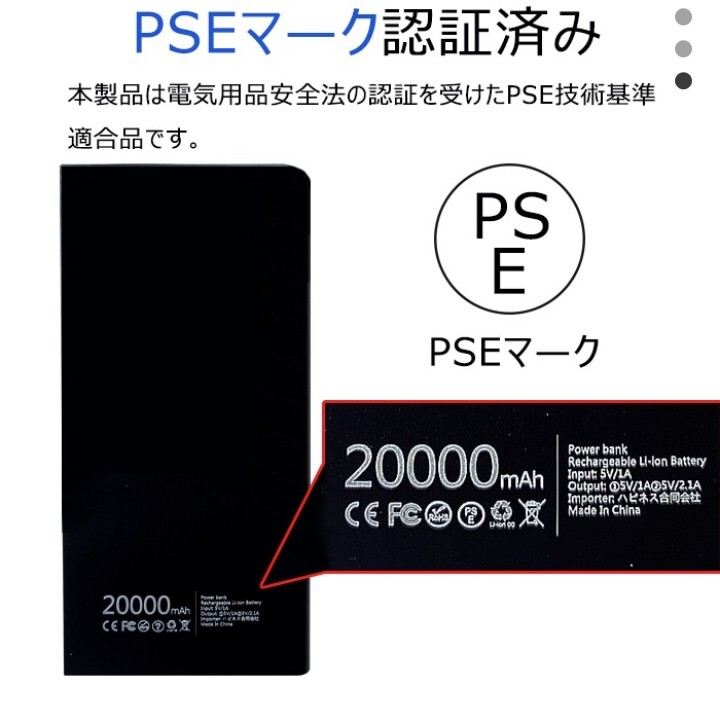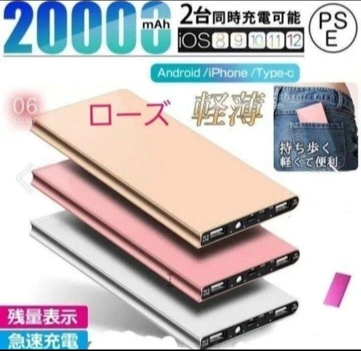 モバイルバッテリー 大容量20000mAh 急速充電薄型 軽量 2台同時充電可能 LEDライト付き