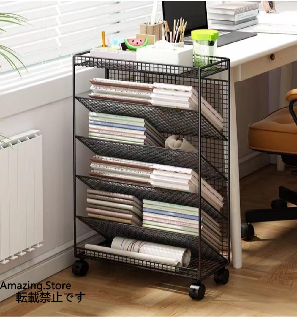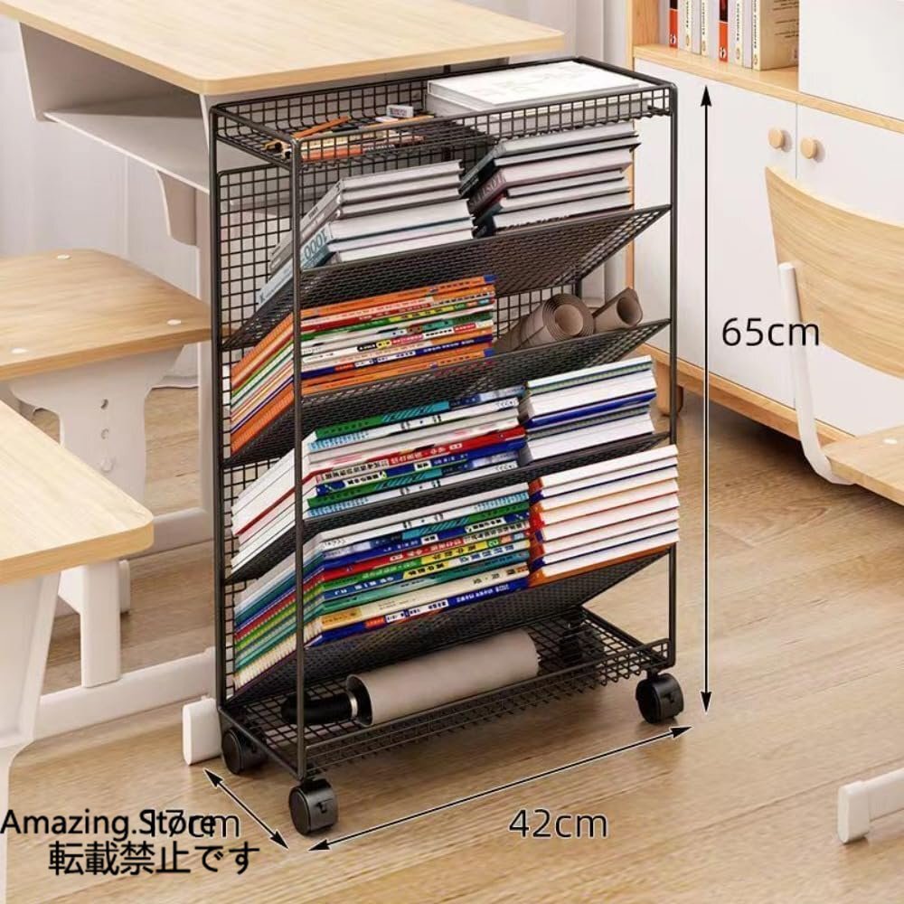 キャスター付きのスリムなデザイン。デスクトップ、子供部屋、オフィスに最適な大容量の教科書収納ラック。