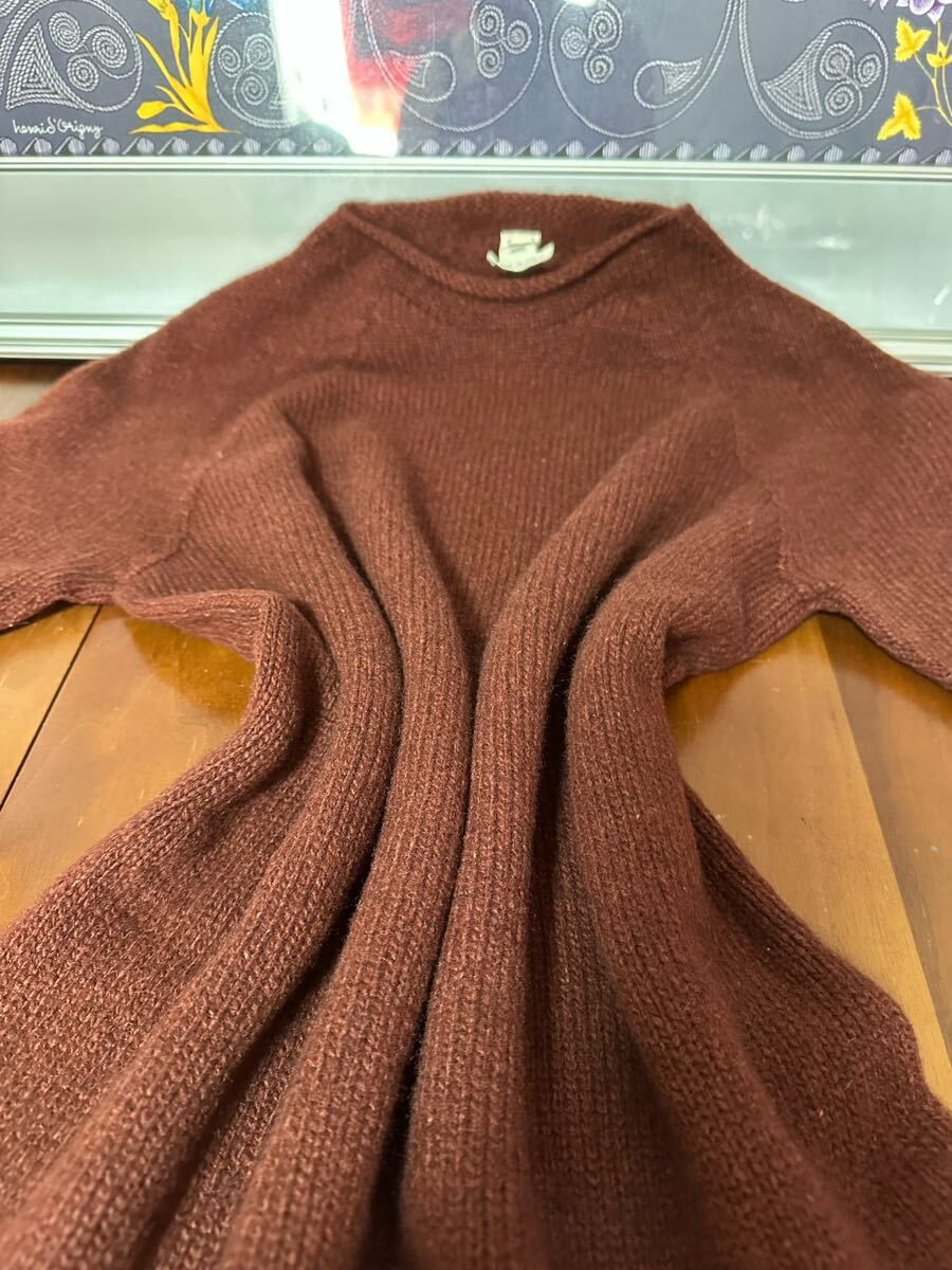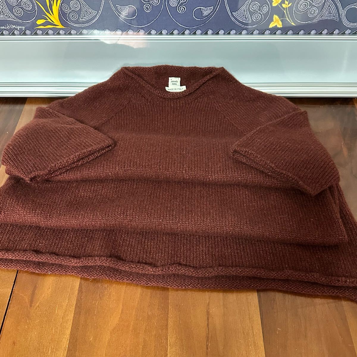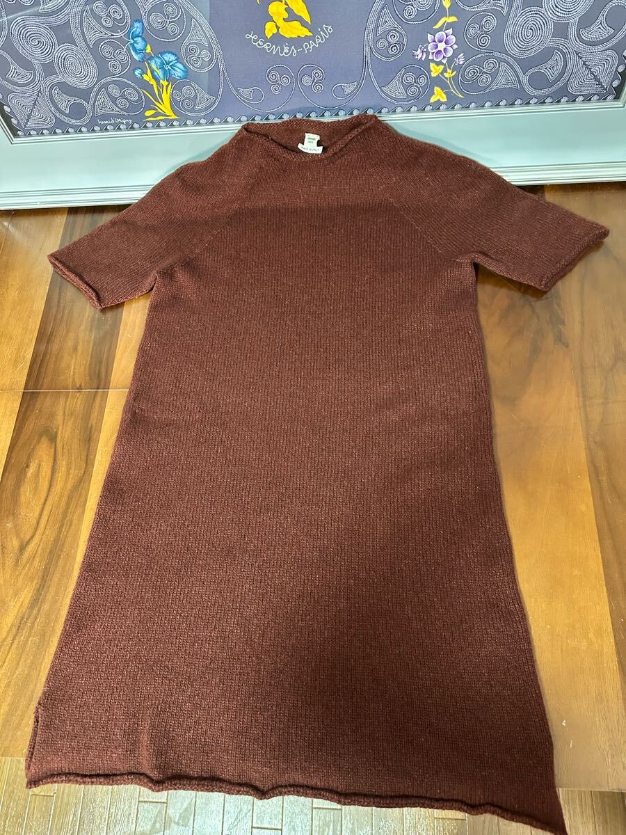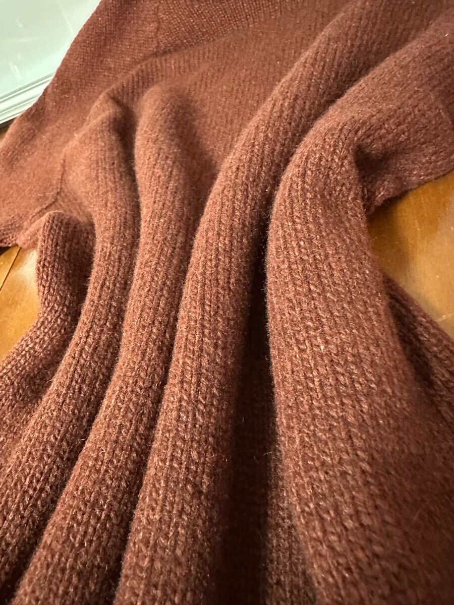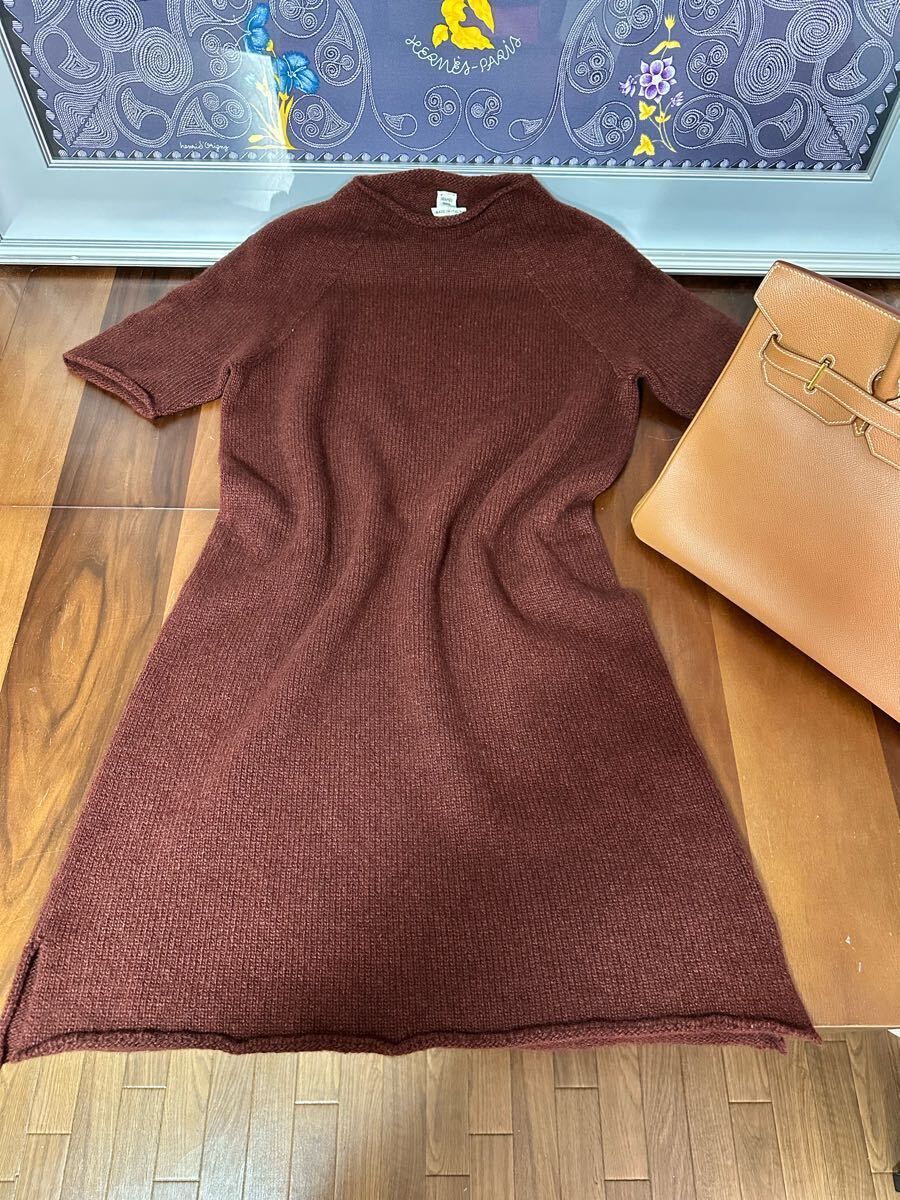 初秋や春先にぴったりな一枚です。エルメスのバックやケリージャンピングブーツのブラウンに相互性のある落ち着いたブラウンカラーで一目で上質な素材だと思っていただけると思います。