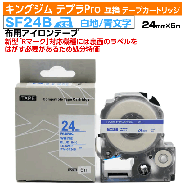 【数量限定セール】キングジム テプラPro用 互換 テープカートリッジ 旧型 SF24B〔アイロンラベル〕24mm幅 白地 青文字 ホワイト ブルー
