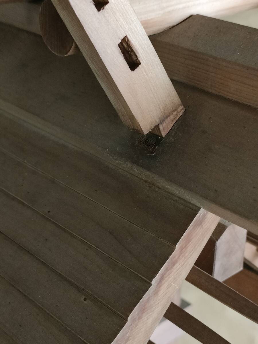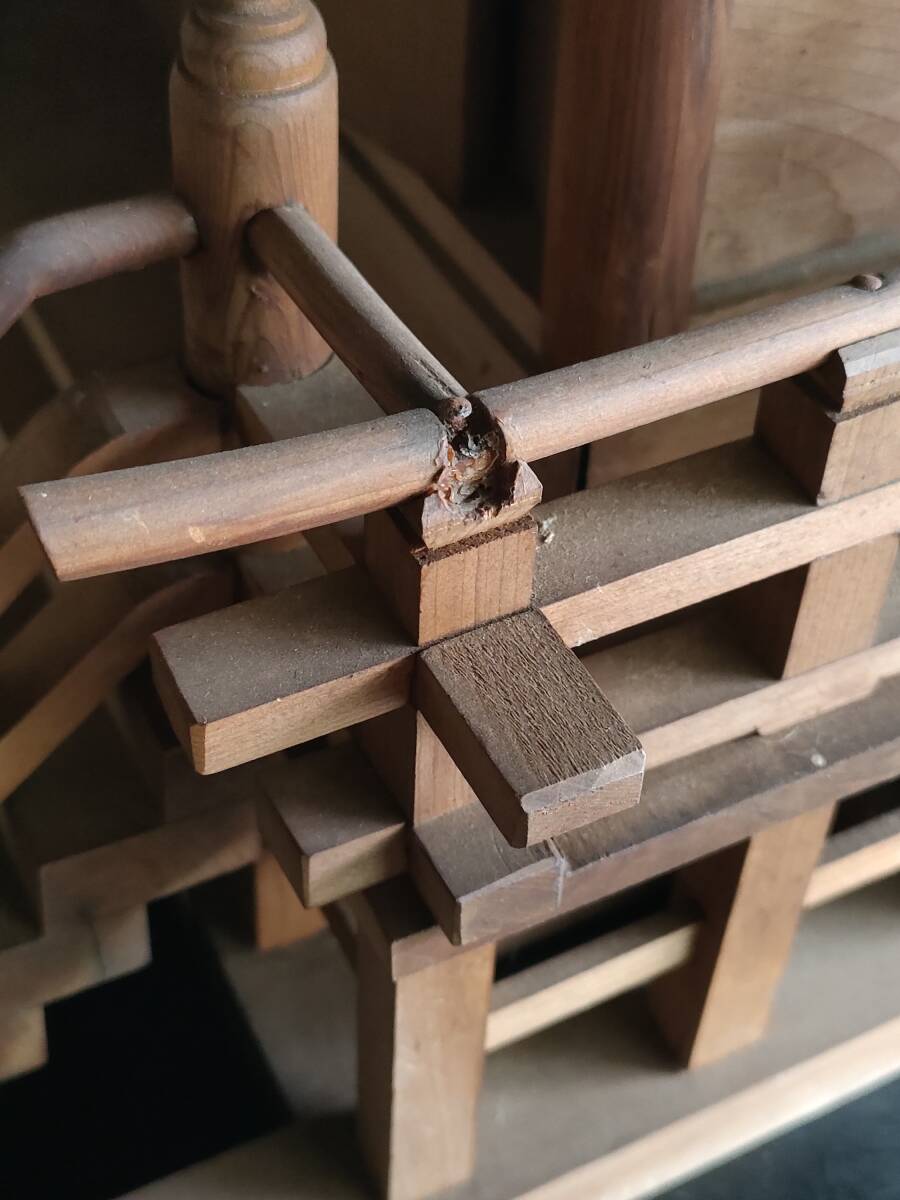 時代物です。 昔の品ですので経年劣化による染みや色褪せ、錆び、細かな傷や欠け等が見られる箇所がございます。 本体の側面部分に3箇所、木のパーツが折れている部分があります。 また、屋根飾りに傷やグラつきが見られる箇所がございます。 商品の状態は写真にてよくご確認くださいませ。 また、全体を軽く拭きあげてはありますが、取りきれない埃等があります。ご了承ください。 写真には写りきらない箇所もございますので、ご理解の上入札をお願い致します。 |