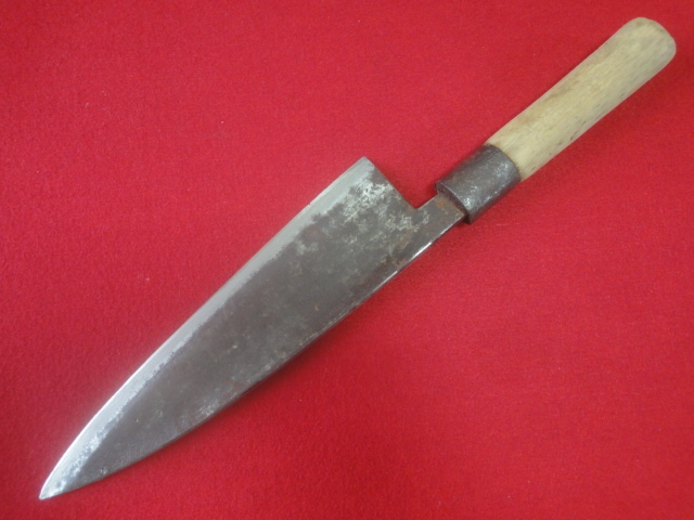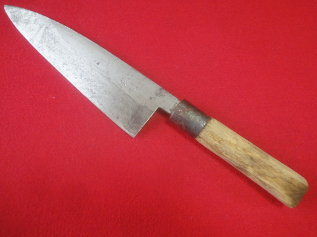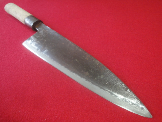 【正本】大型 相出刃包丁 ※黒打/鮭切など 刃渡25.3㎝ 全長42.8㎝ 峰厚10.3mm ※片刃 中古品 全国一律送料1200円