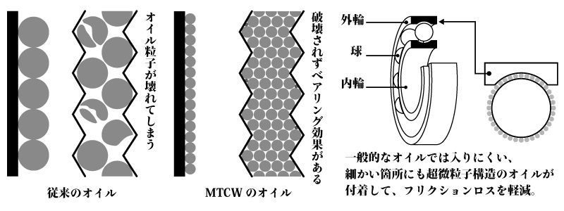 特に通常の化学合成オイルでは、オイル分子が破壊され、オイルとしての役割を失いますが、超微粒子構造オイルは、オイル分子が破壊されることはありません。