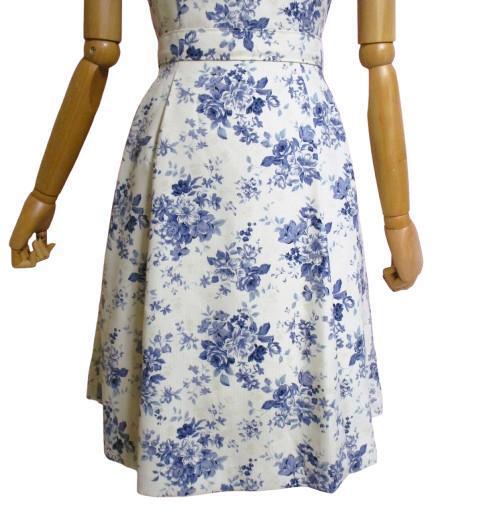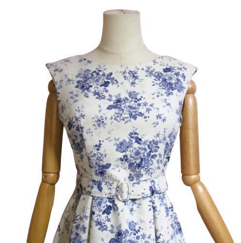 ごくごく淡いベージュにネイビーのフラワープリントですので格調が高く甘くなりすぎていない所が嬉しいポイントです