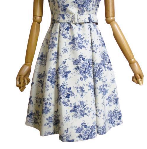 レストローズ L'EST ROSEの紺の薔薇の花柄が大人の雰囲気の上品ワンピース