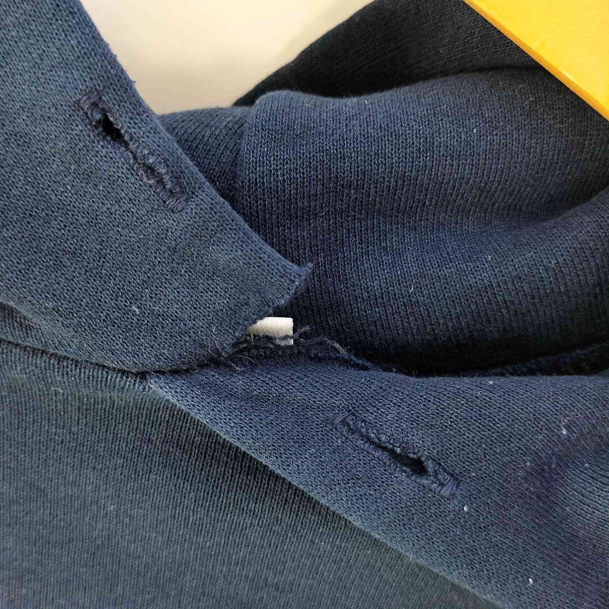 状態詳細 | 全体的に少々の毛羽立ちと色褪せ、フロントと袖に薄汚れ、首元に一部破れ、フード紐に欠品がございます。 |