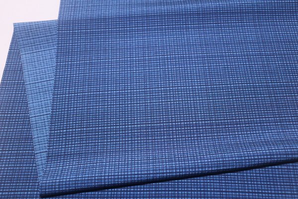 | 【京わぎれ】東レ シルック 男物 長襦袢はぎれ 総しけ引 格子 薄藍色地系×濃紺柄 替え袖用 2.2m ① | ||||