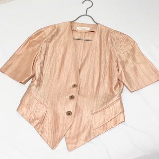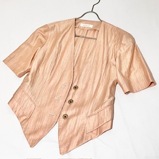 ★ 即決・送料無料 ★ RENOWN レナウン enjour アンジュール しわ加工 半袖ジャケット M サーモンピンク