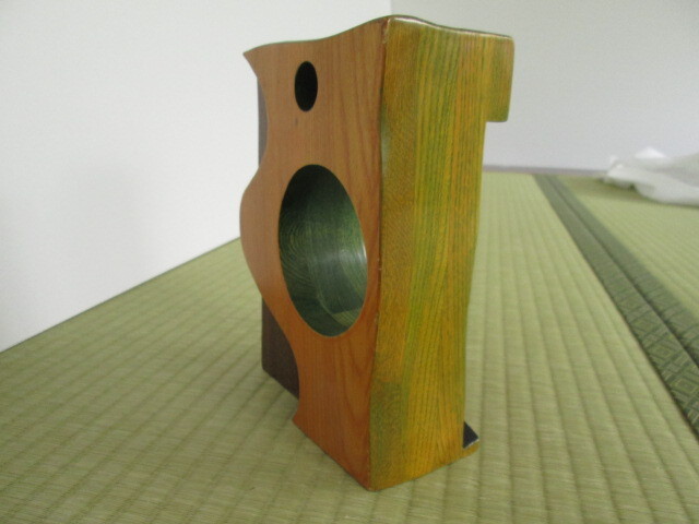 大きさは横13.5㎝高さ19㎝幅5.5㎝ 上の穴直径3㎝深さ10㎝です。