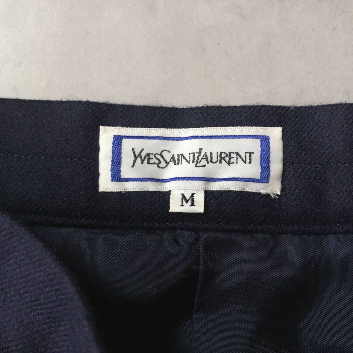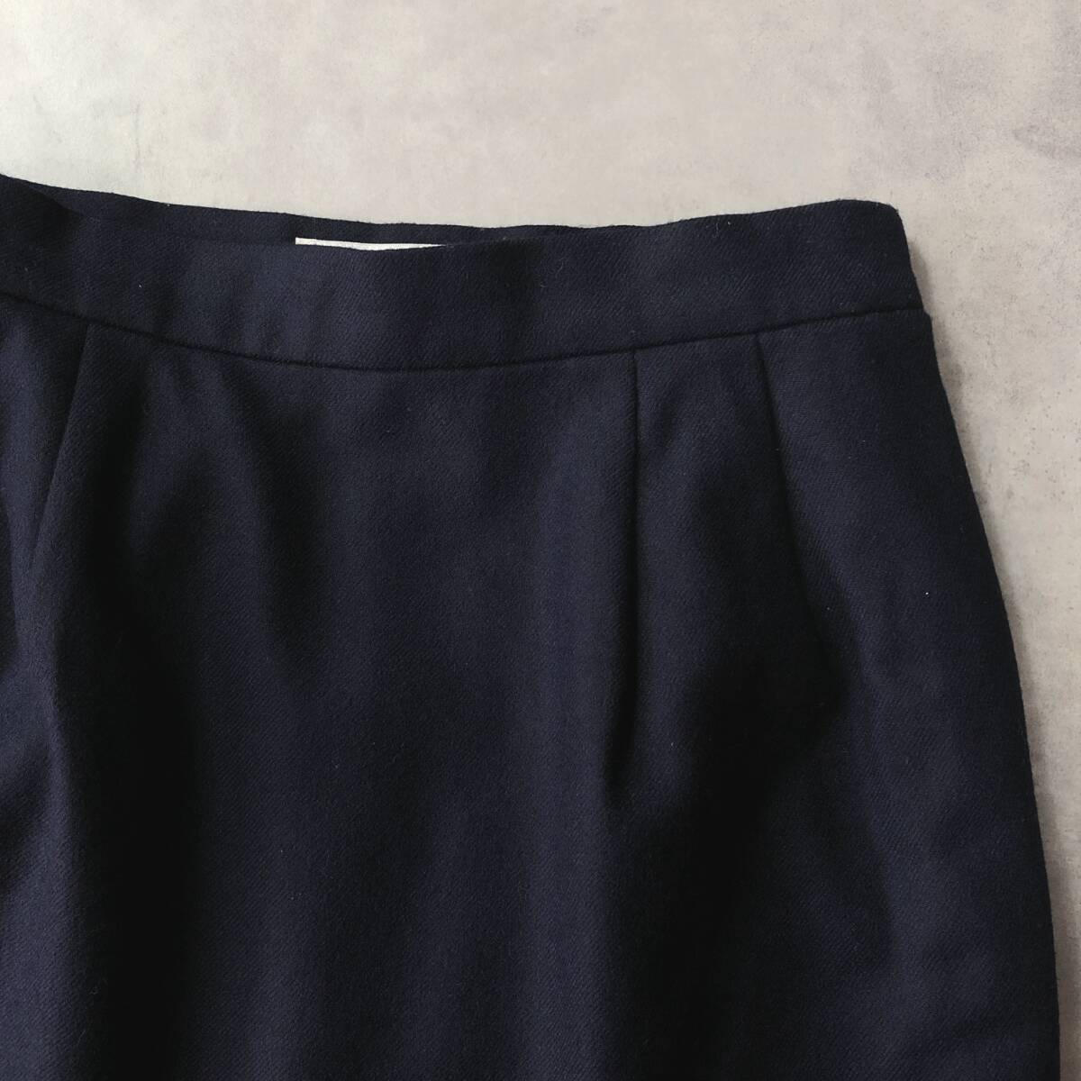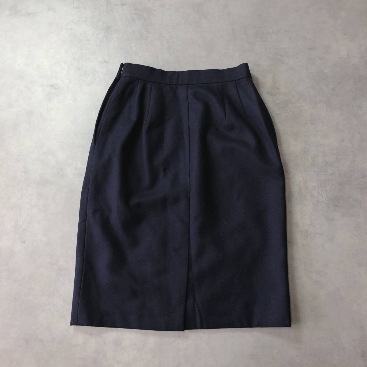 WH011●YVES SAINT LAURENT:膝丈ウールタイトスカート ●M● 紺 アーカイブ イヴサンローラン YSL
