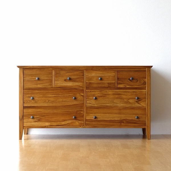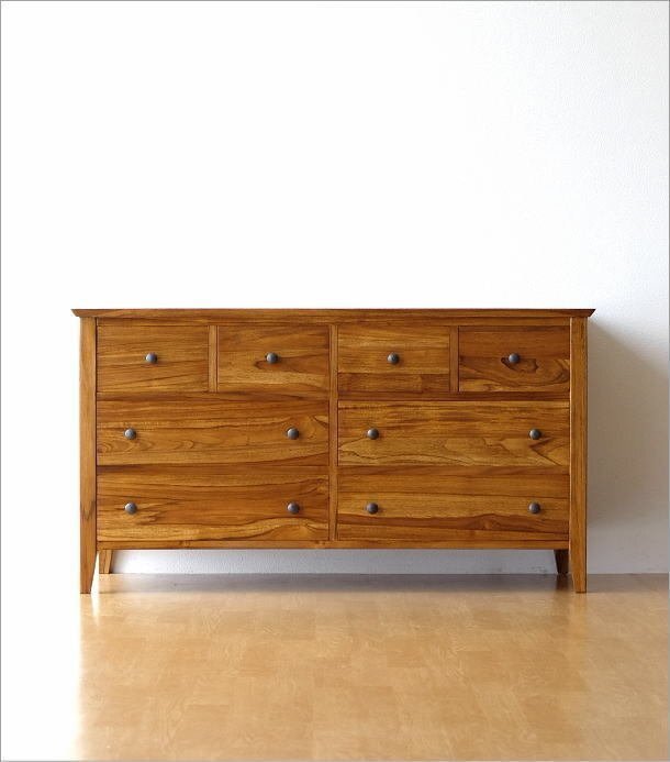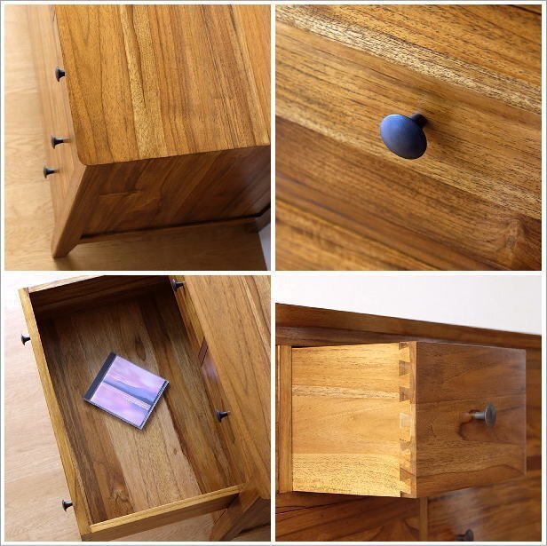 すべてにチーク無垢材を使用した チークワイドチェスト120 日本のリビングにカッコよく決まります! インドネシアの高級材料チーク材で作られた チークワイドチェスト120 リビングに置いてもカッコよく 均等に分かれた引き出しタイプは 衣類はもちろん 家族の細々した雑貨等の 収納も楽々できそうです 使えば使うほどチーク材の木の味わいが出てきます 商品名 : チークワイドチェスト120(wat8977) 全体サイズ(cm) : 幅120×奥行45×高さ65 引き出し内寸(大) : 幅50×奥行37×高さ13 引き出し内寸(小) : 幅22×奥行37×高さ13 脚長さ : 10 天板厚さ : 2 材質 : チーク ※取っ手は真鍮です 重量 : 約40kg 塗装 : シェラック 組立状態 : 完成品 生産国 :インドネシア ★床のキズ防止フェルトを貼ってお届けします [送料無料※] ※北海道は送料別途4000円、沖縄は9000円となります |