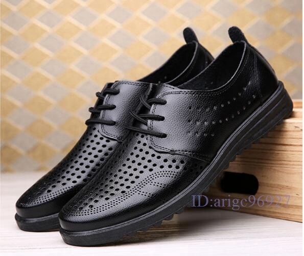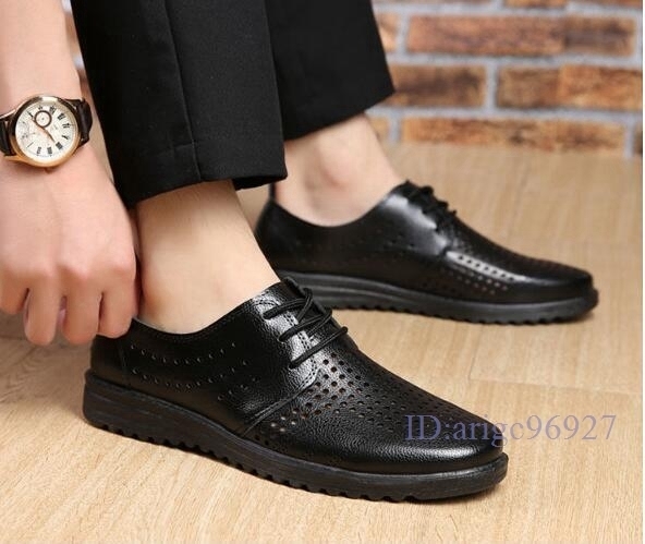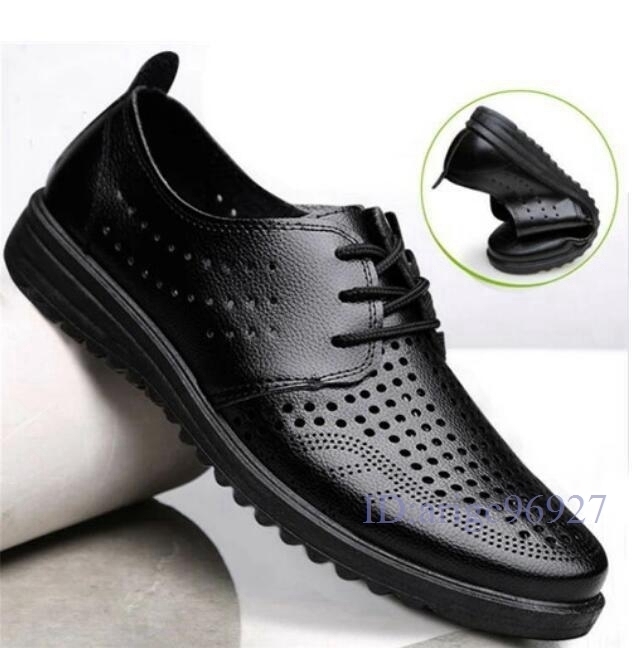 F588★ビジネスシューズ サンダル 外羽根 通気 メッシュ 夏 カジュアルシューズ ローファー フォーマル 紳士靴 ブラック 25cm