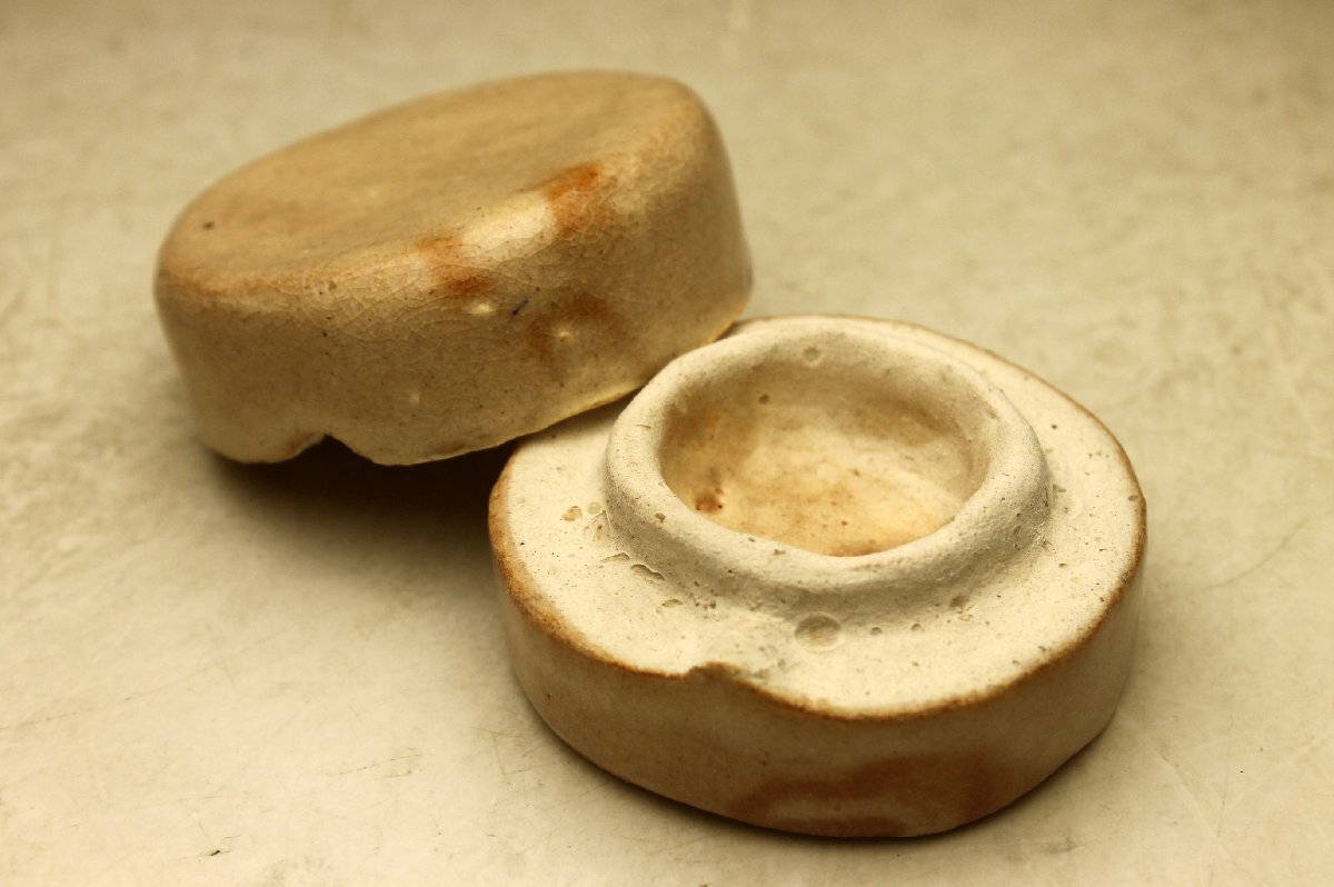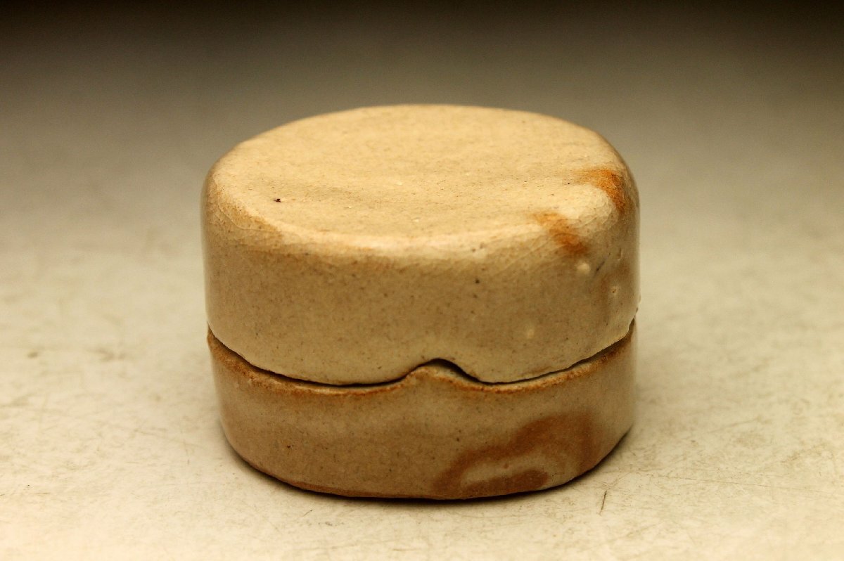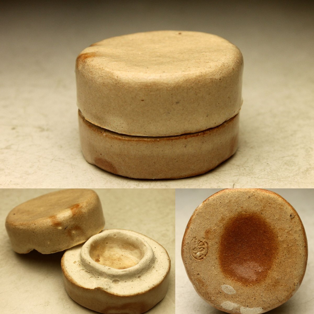 【余韻】 茶道具 古萩 萩焼 在銘 丸香合★作家物 無傷美品<同梱可>