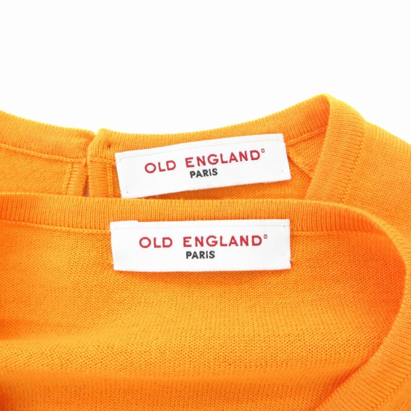 オールドイングランド OLD ENGLAND アンサンブルニット カーディガン 半袖ニット 長袖 プルオーバー ウール 36 オレンジ