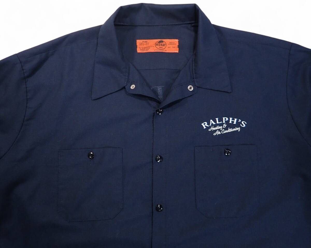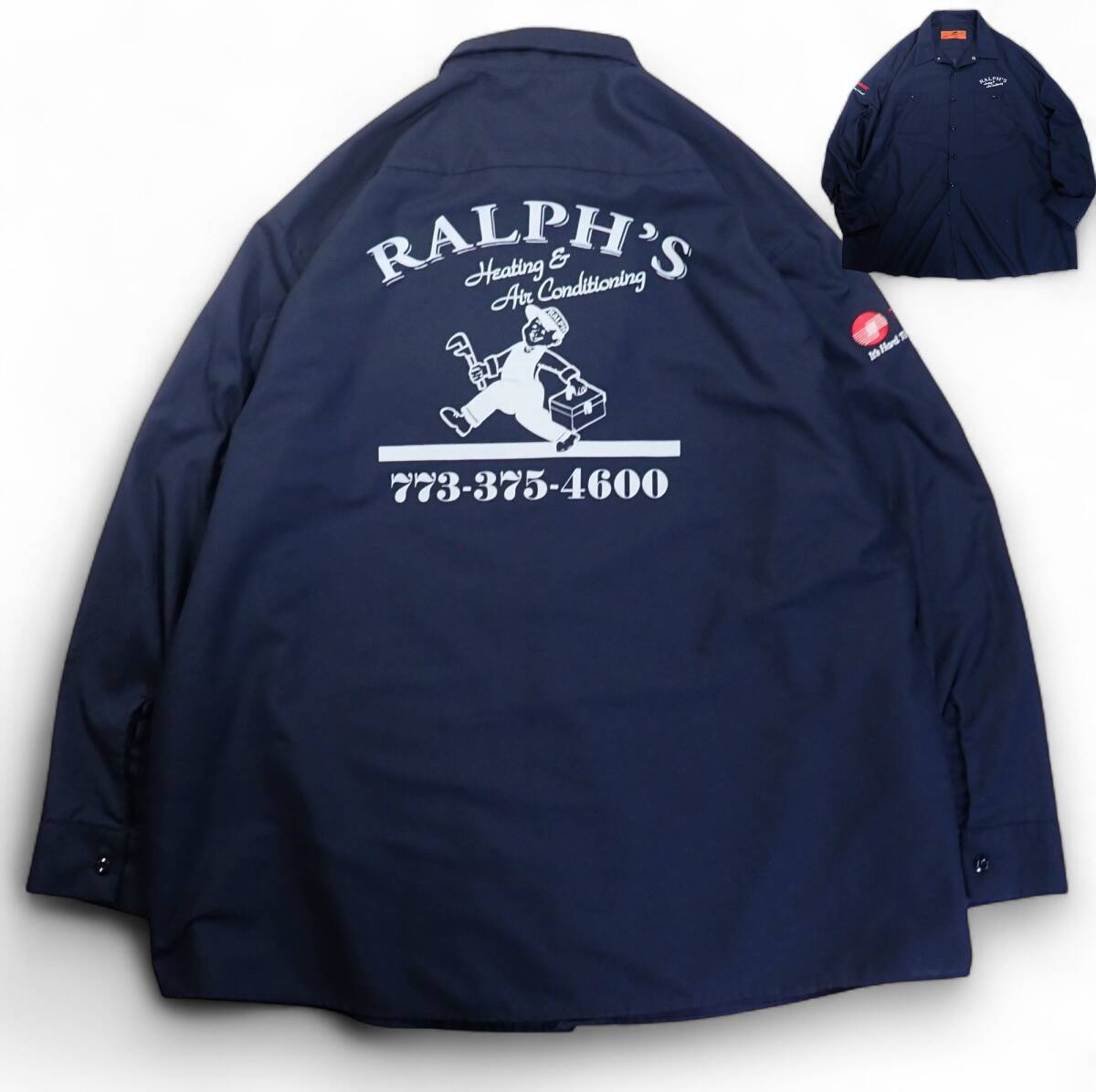 備考 RED KAPのアメリカ合衆国、シカゴにあるRALPH'S Heating & Air Conditionningの刺繍、可愛いプリント入り長袖ワークシャツです。 クリーニング、プレス済。