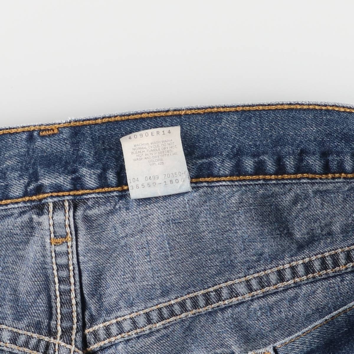 着用感: メンズw35 表記サイズ: W36 ウエスト: 90cm 股上: 33.5cm 股下: 27cm もも周り: 72cm 裾周り: 60cm ![]() | ![]() ランク:C USEDデニムですので使用感、擦れ、色落ちなどございますが、まだまだご愛用していただけます。 古着という事をご理解の上ご注文よろしくお願いします。 【状態追記】 ●全体に汚れ・擦れ ●後、両腿に糸ひき ●前後、両裾(裏表)に擦れ・汚れ ●前、両ポケット口・両ポケット内袋に汚れ |