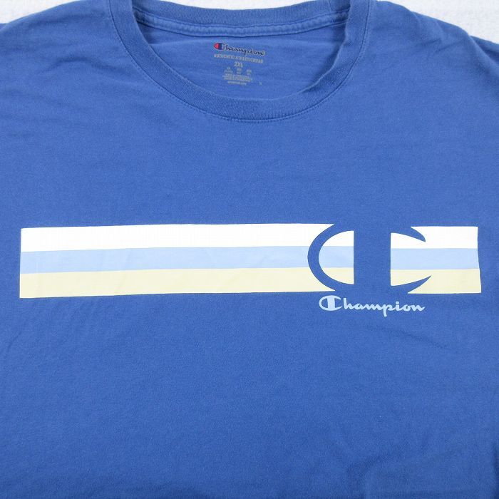 【商品名】 XL★古着 チャンピオン champion 半袖 ブランド Tシャツ メンズ ワンポイントロゴ 大きいサイズ コットン クルーネック 薄紺