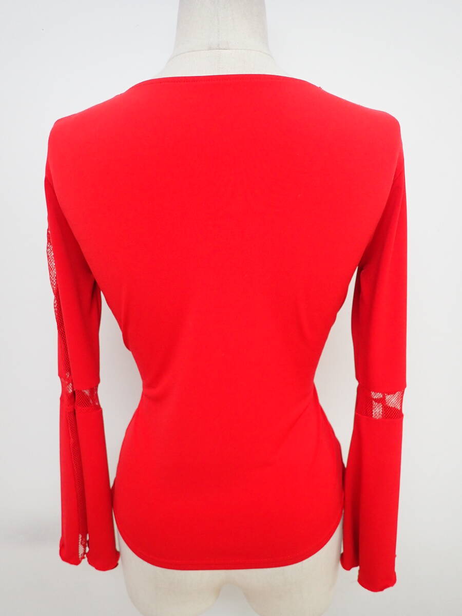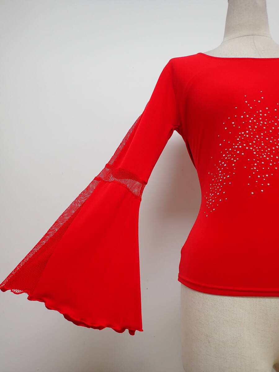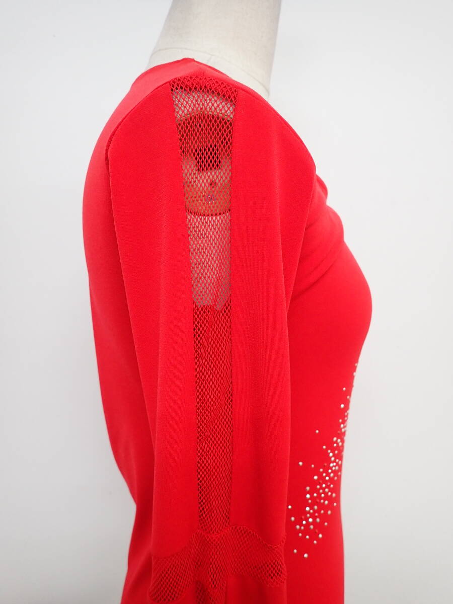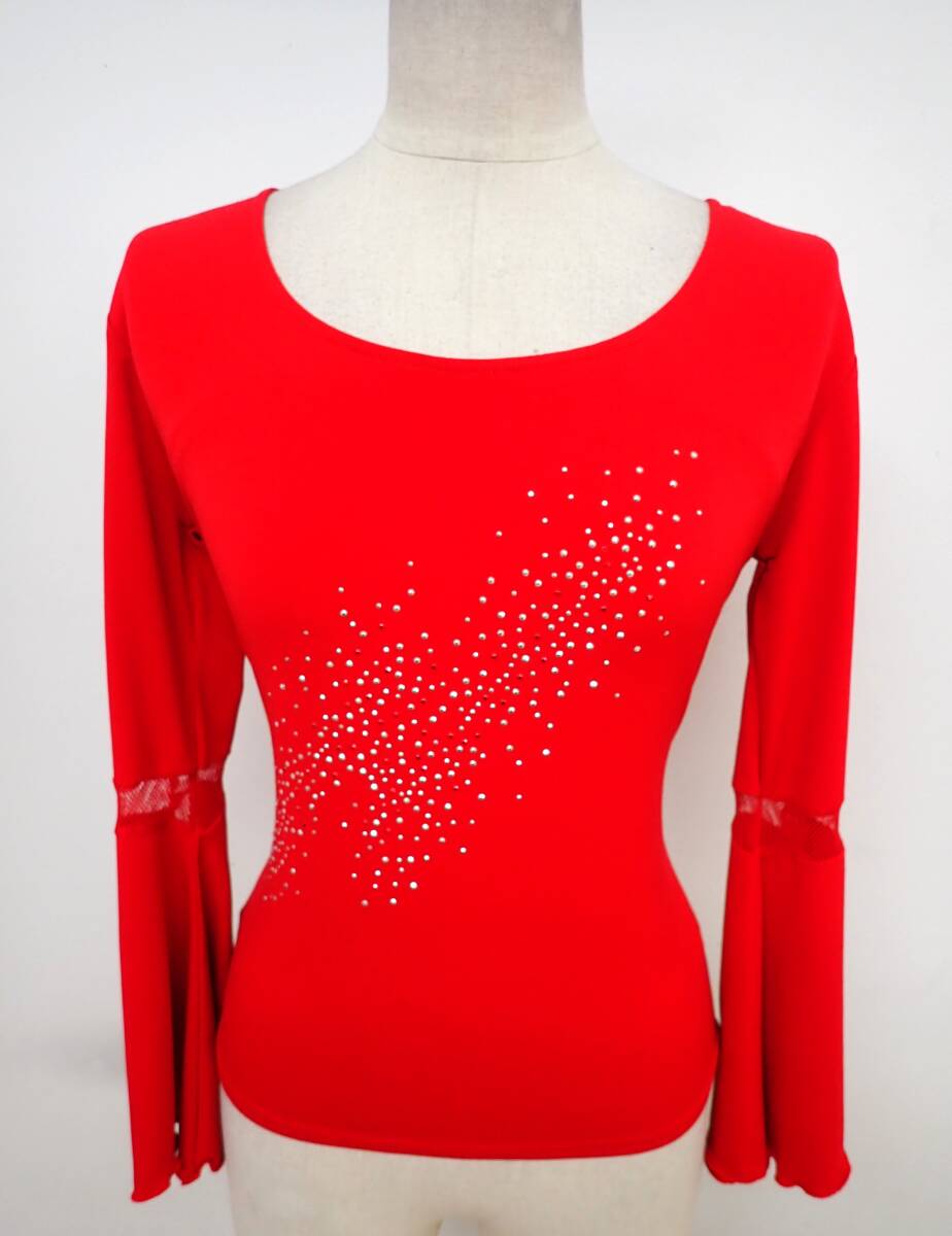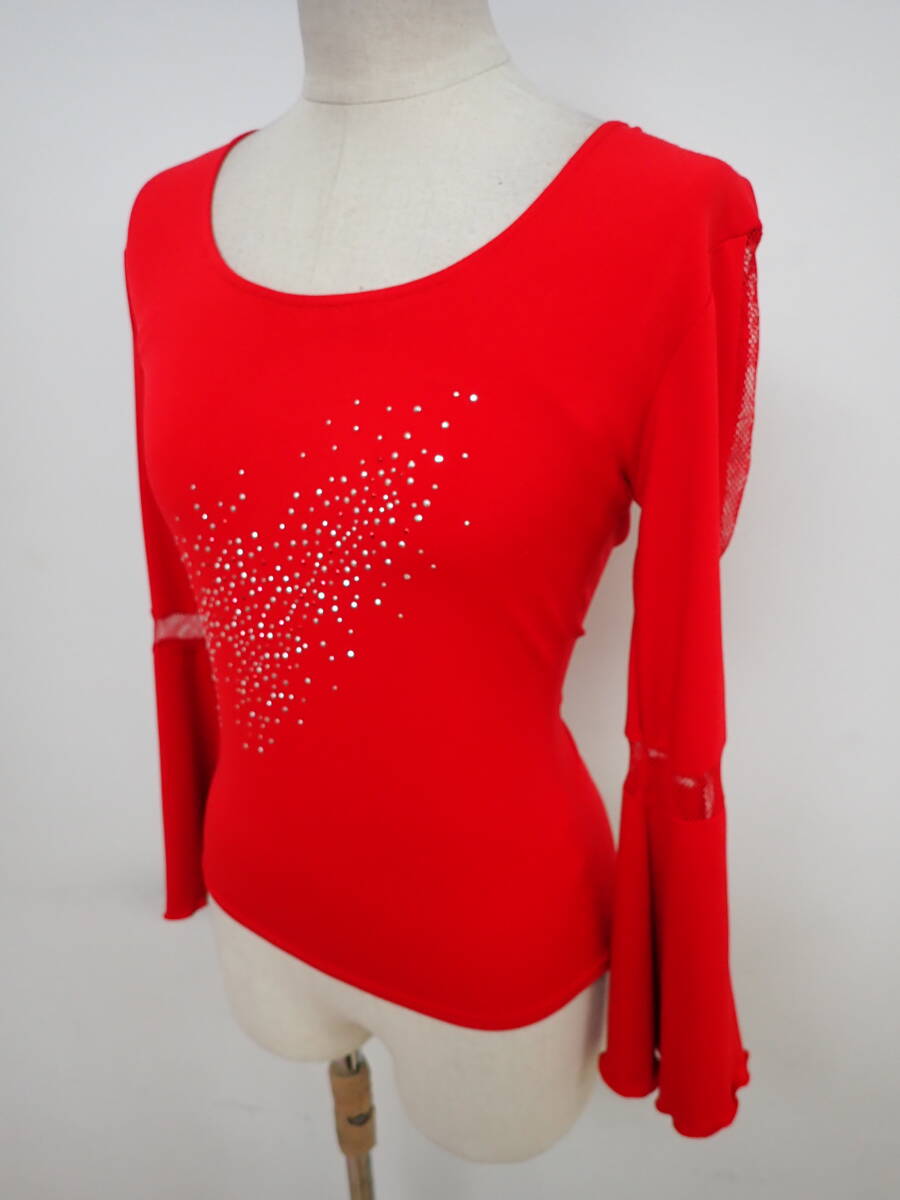 ⑥25F21★M/赤/ジルコン/トップス☆社交ダンス/モダン/スタンダード/ラテン/レッスン
