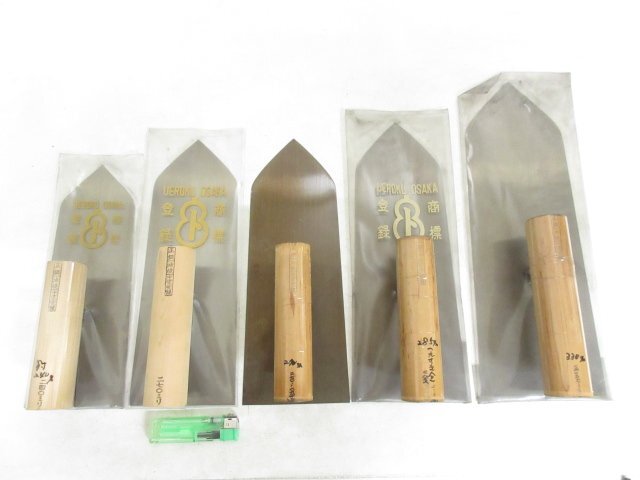 P096■兵丹ト / 油焼 中塗鏝 / 240 270 270 285 330mm // 計5点 // 荒鏝 左官道具 / まとめ売り / 未使用